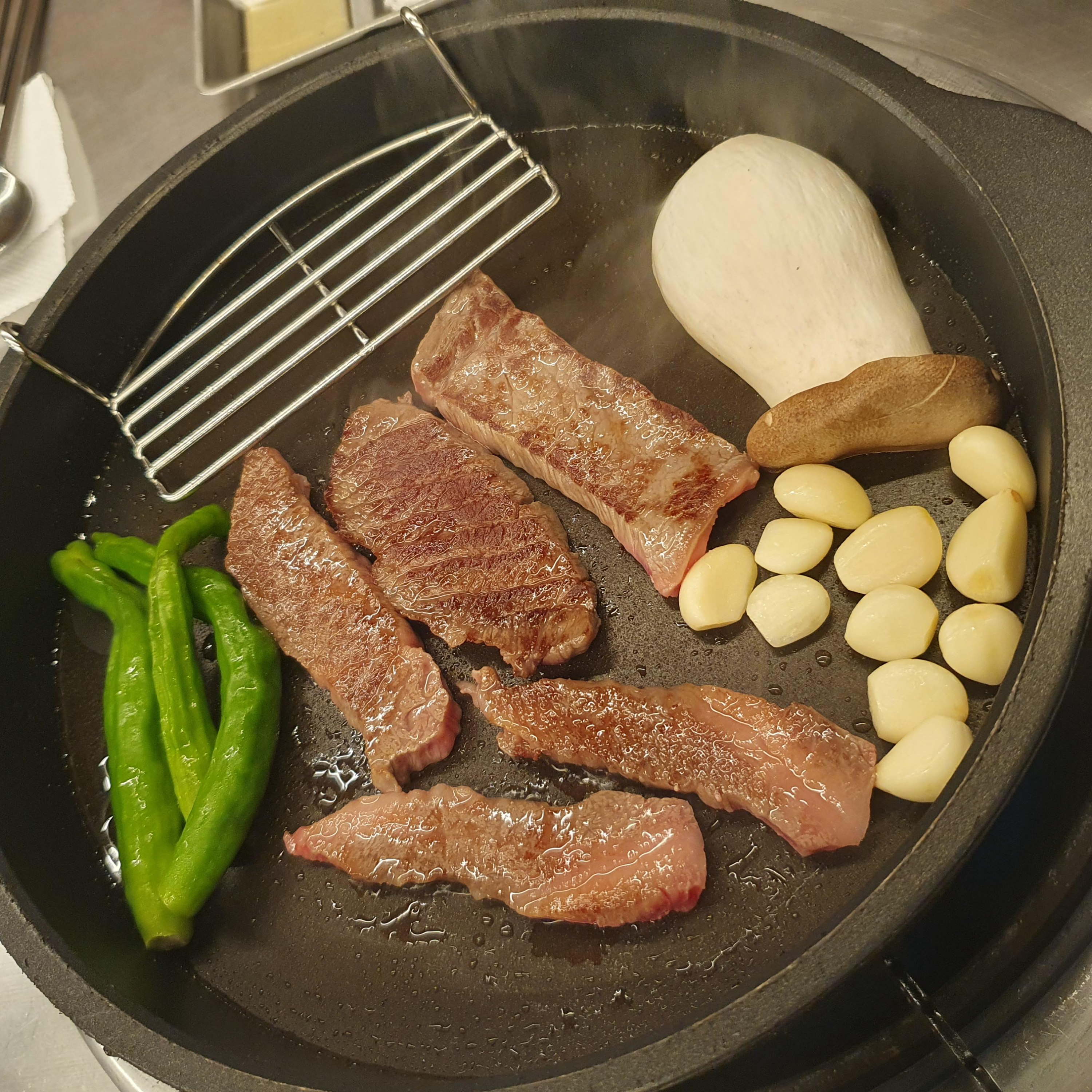 고기가 서빙 되면 직접 구우면 되는데요.
