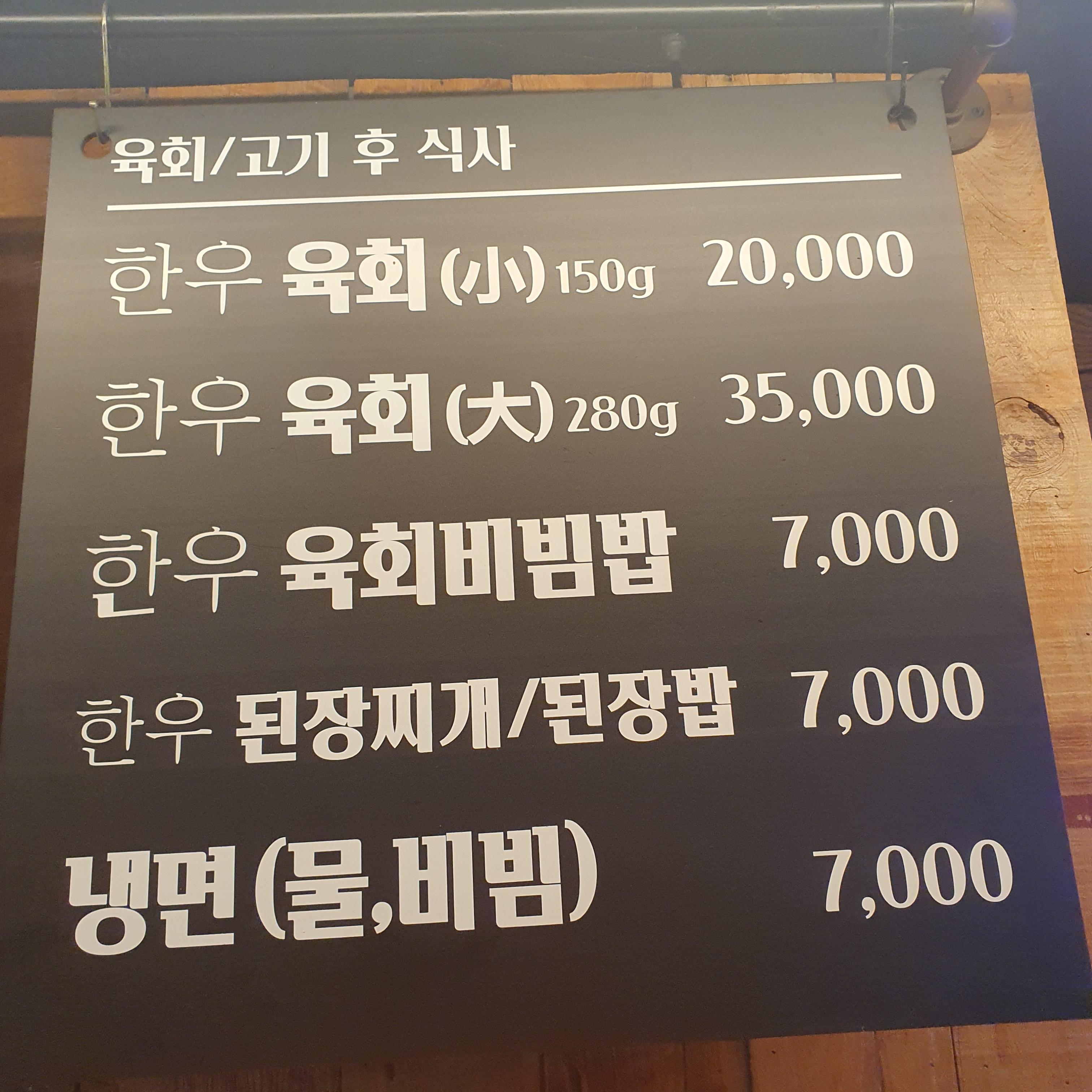 사이드 메뉴로는 육회와 육회비빔밥, 된장찌개/된장밥, 냉면이 있는데요.