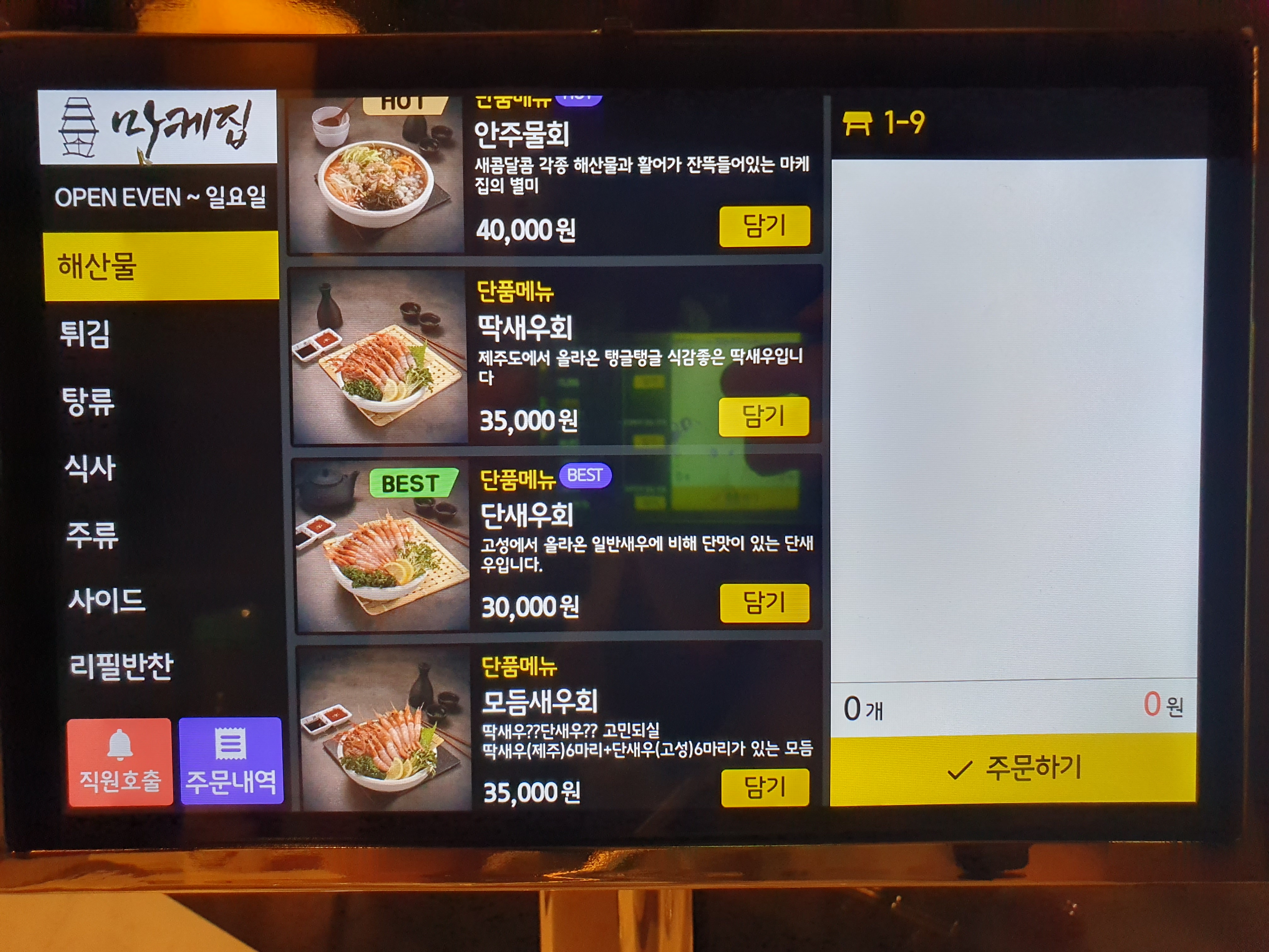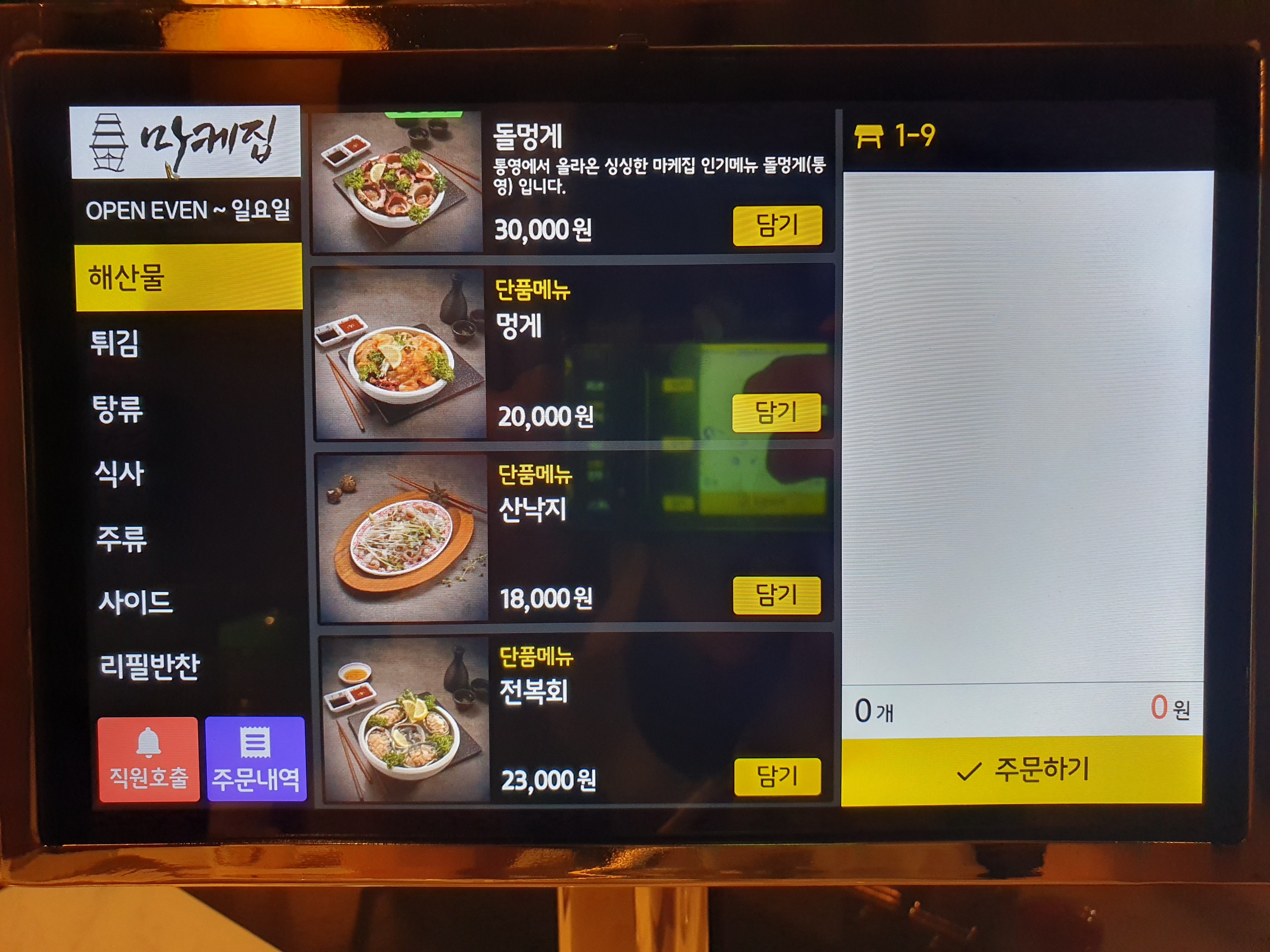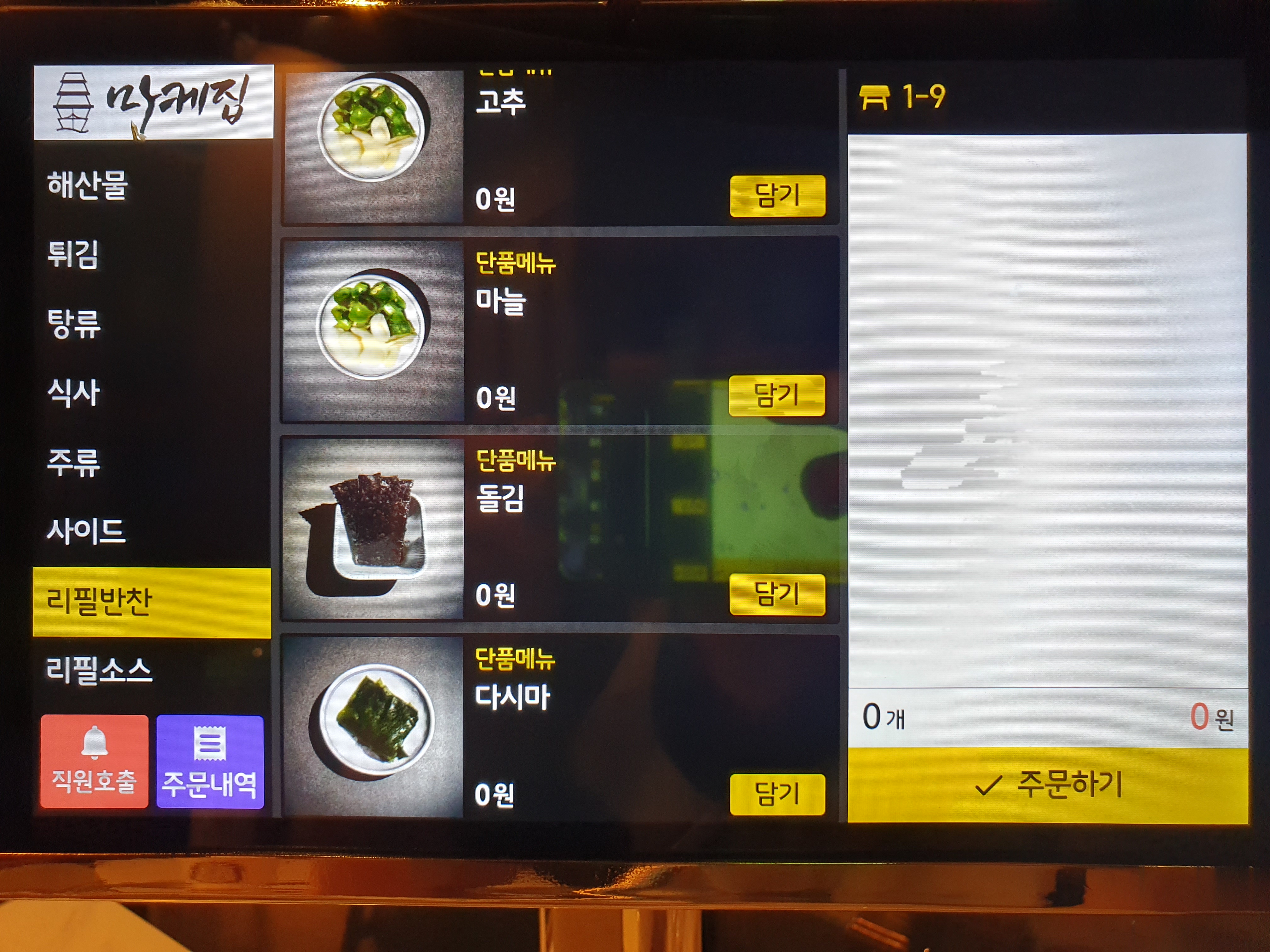 이곳은 테이블 마다 있는 키오스크로 주문하는 곳인데요.