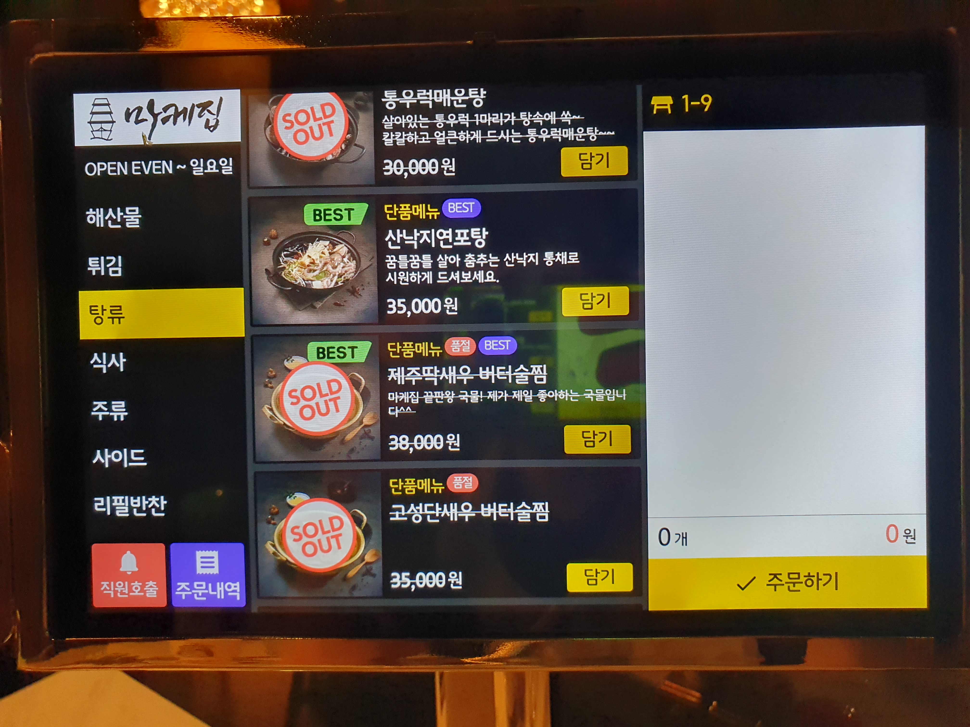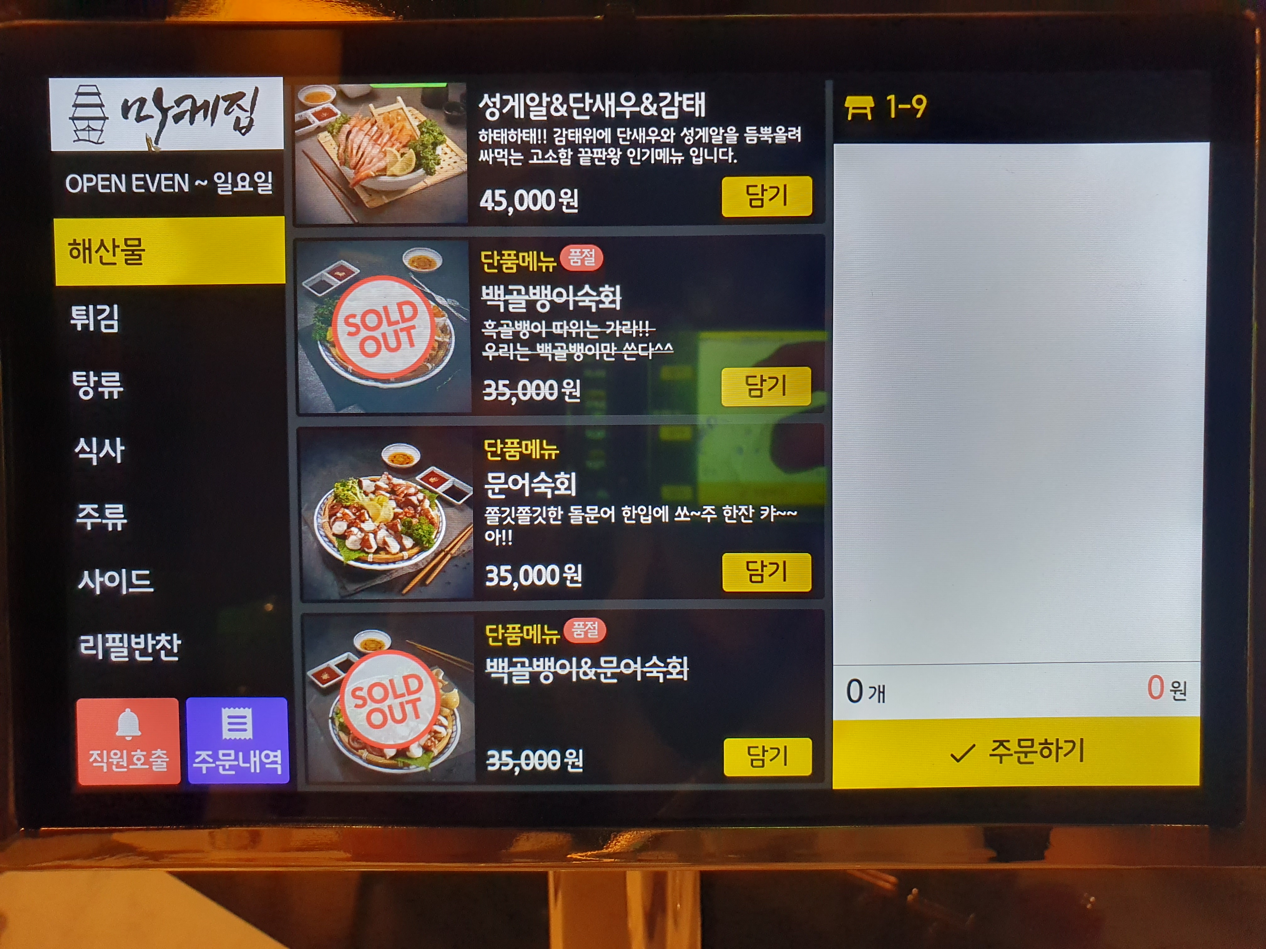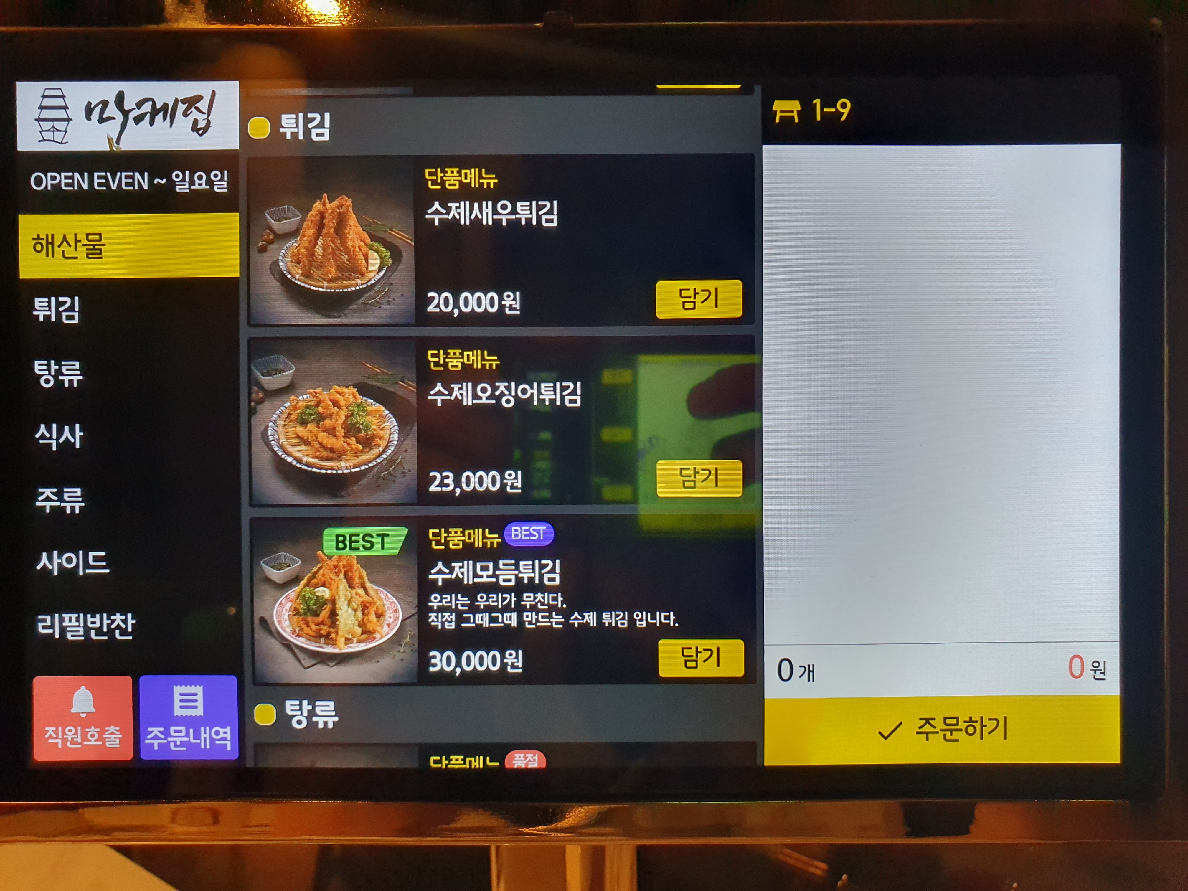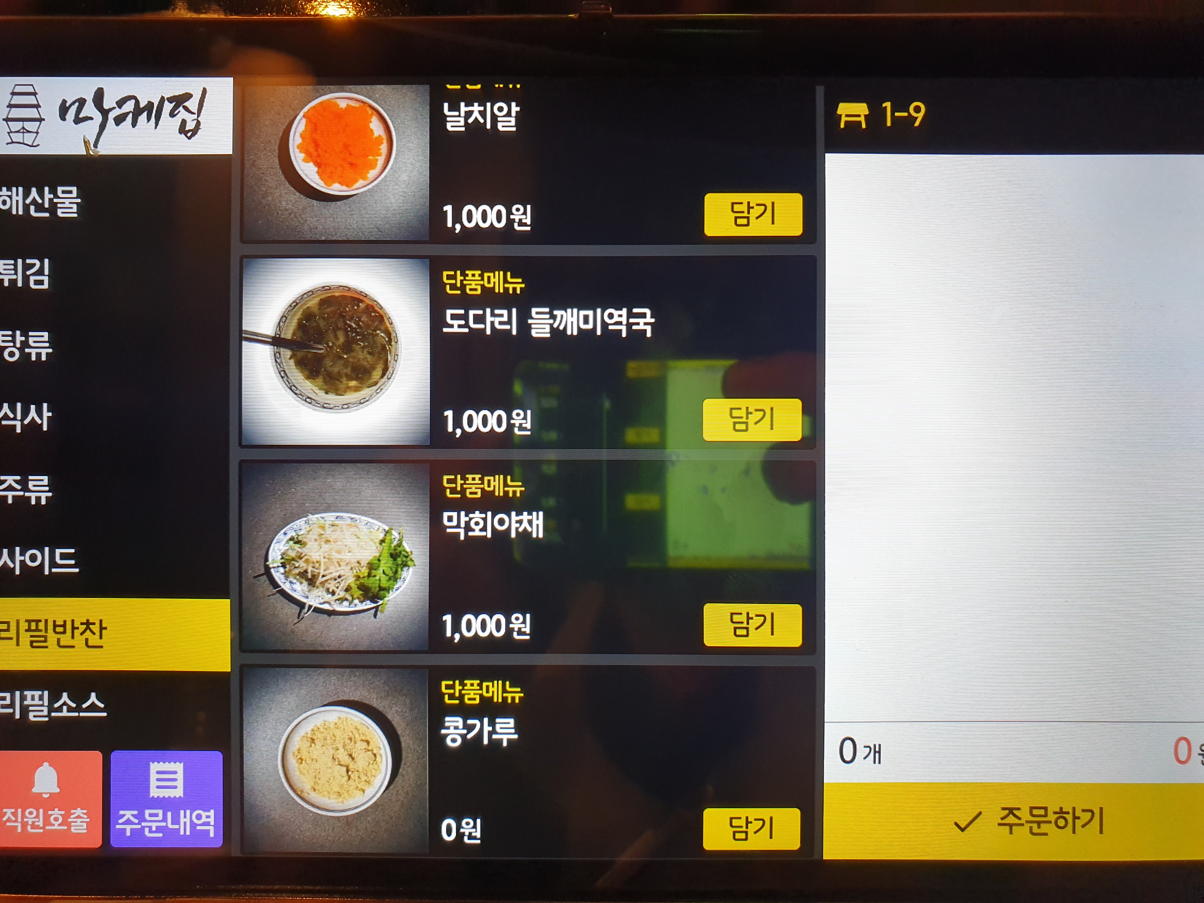 이곳은 테이블 마다 있는 키오스크로 주문하는 곳인데요.