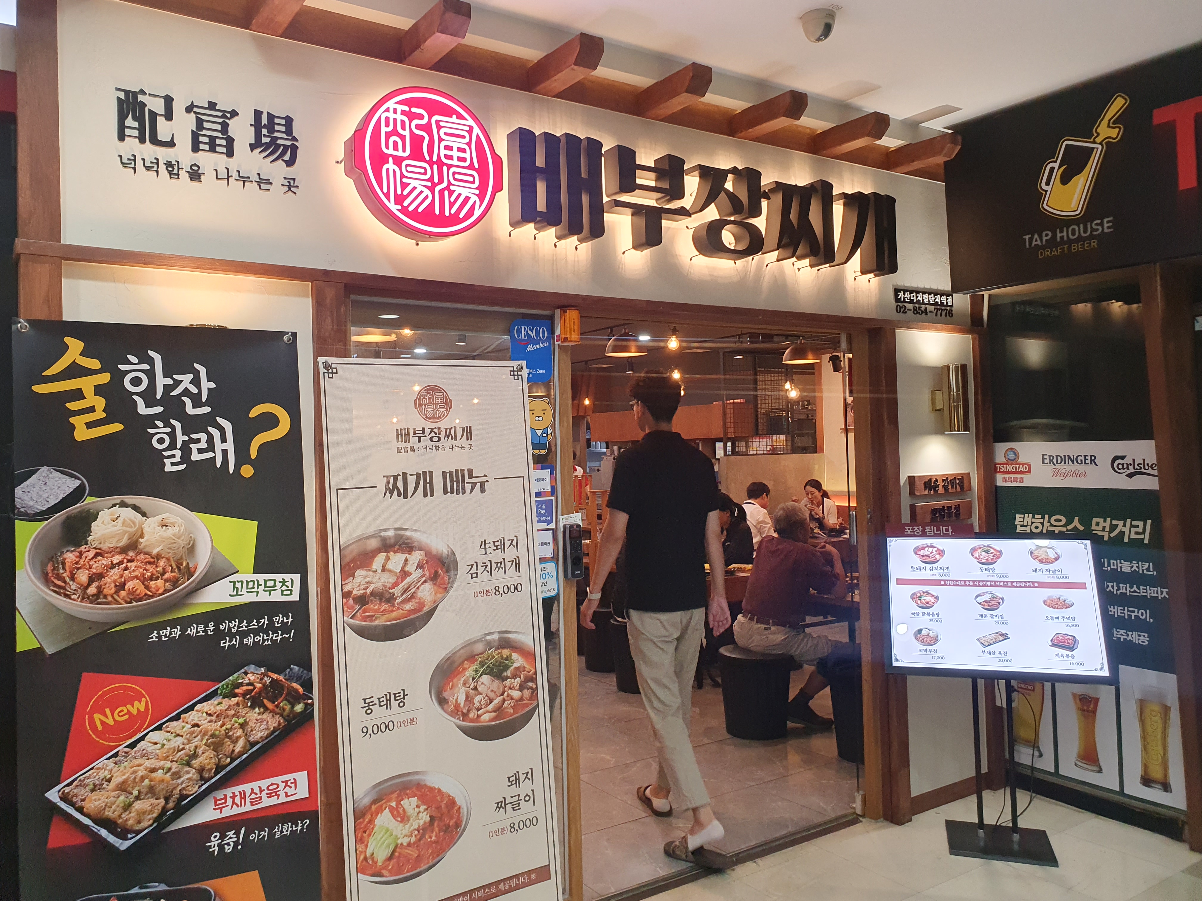 우림라이온스벨리 2층에 위치한 배부장찌개는 에스컬레이터를 올라가면 바로 보이기에 찾기 매우 쉽습니다.
