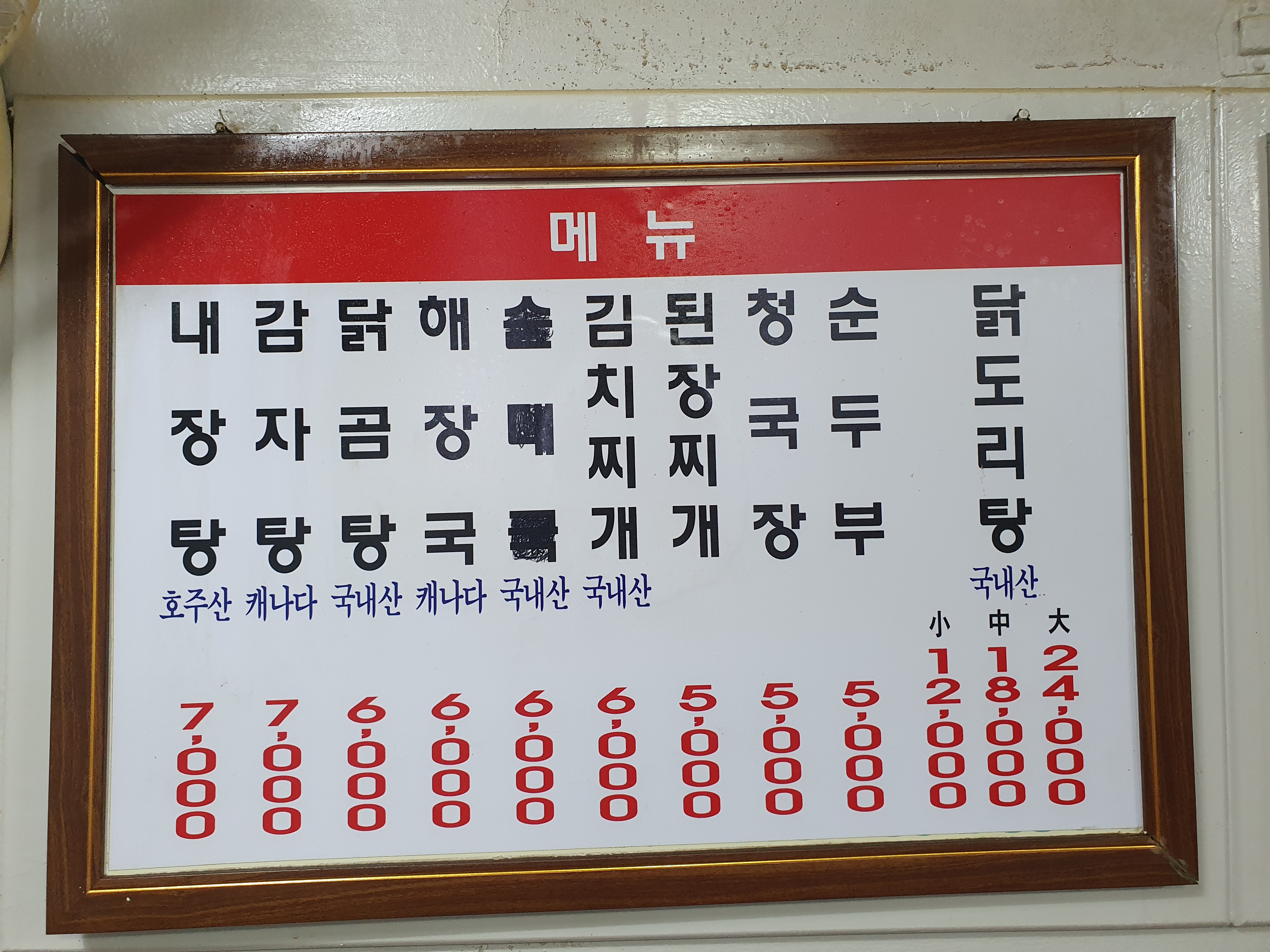 간단한 식사메뉴, 닭도리탕 등 부터 시작해서 삼겹살, 오리 등 별별 메뉴가 많이있습니다.