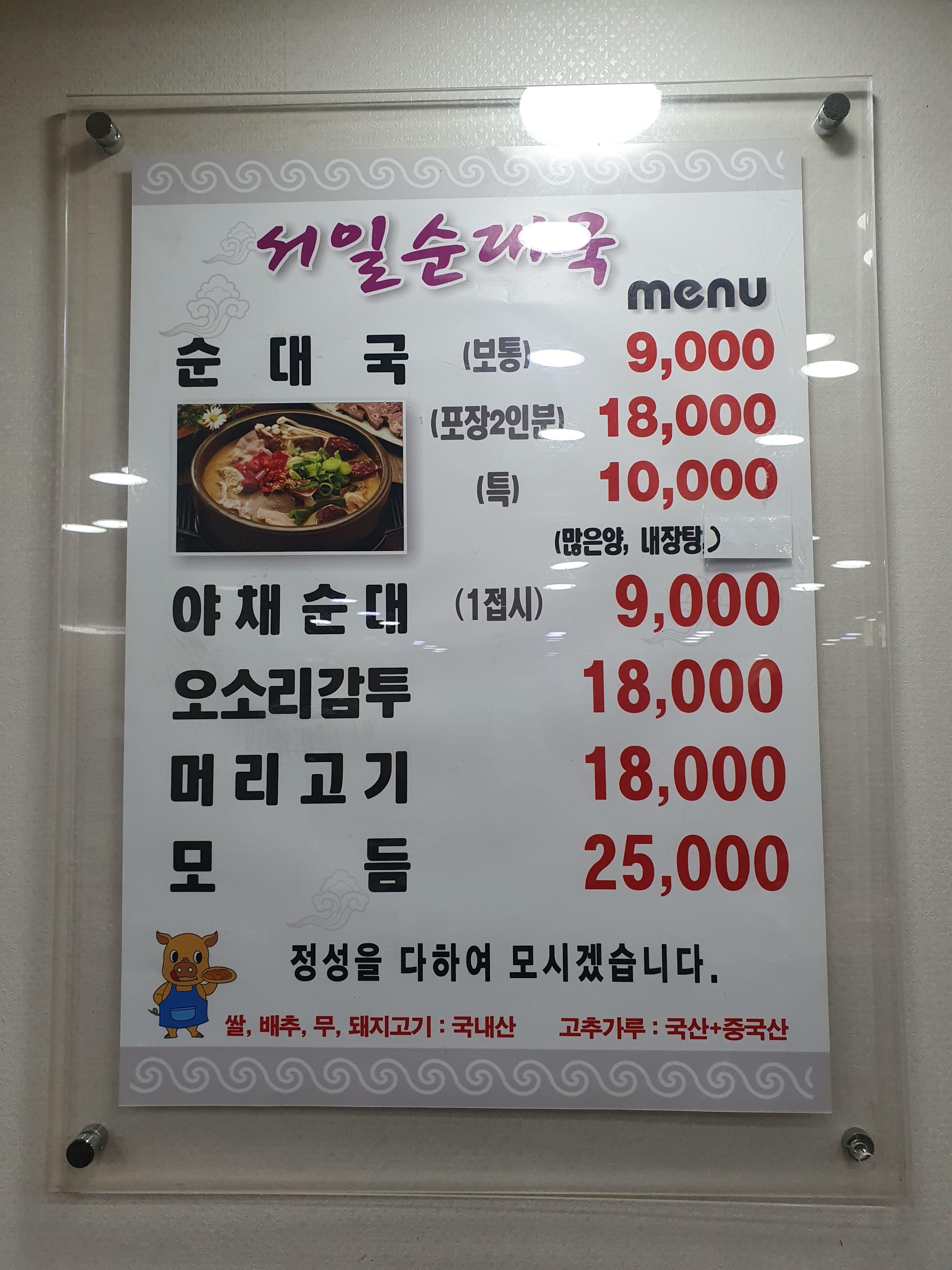 서일 순대국이다!!! 라는 간판인데요.