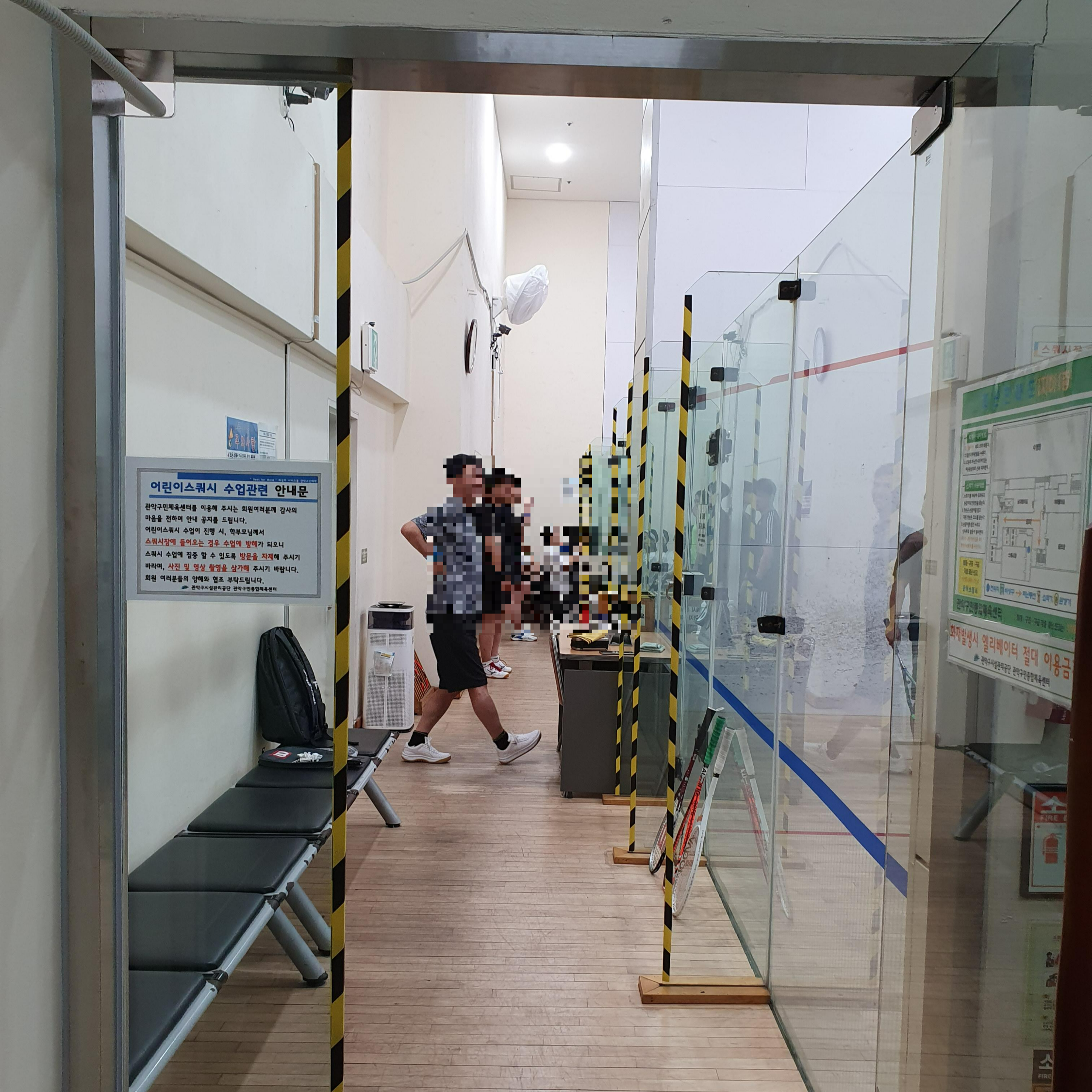 스쿼시장은 이렇게 대기석과 코트로 이루어져있는데요.