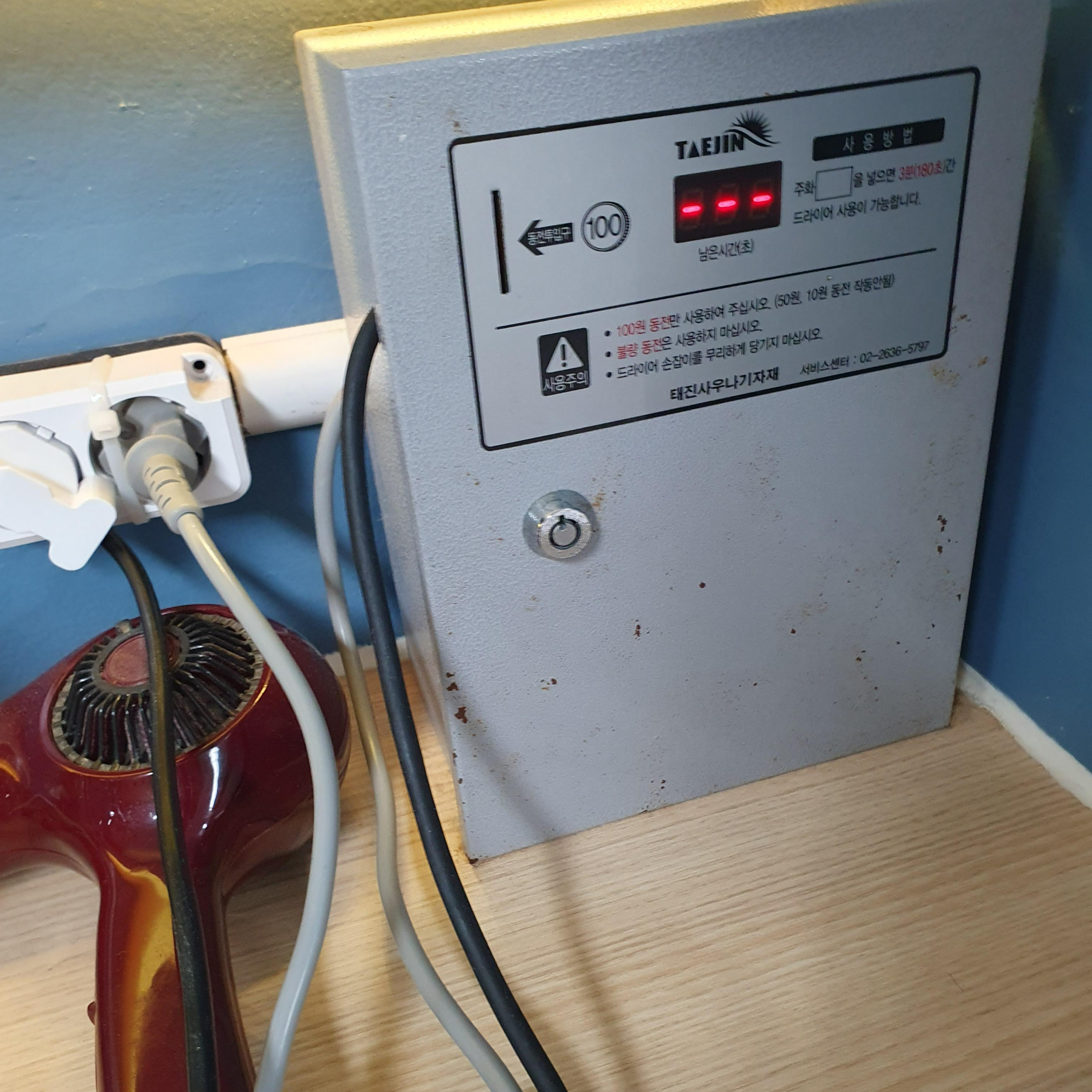 드라이기를 이용하려면 동전 100원을 넣어야합니다.