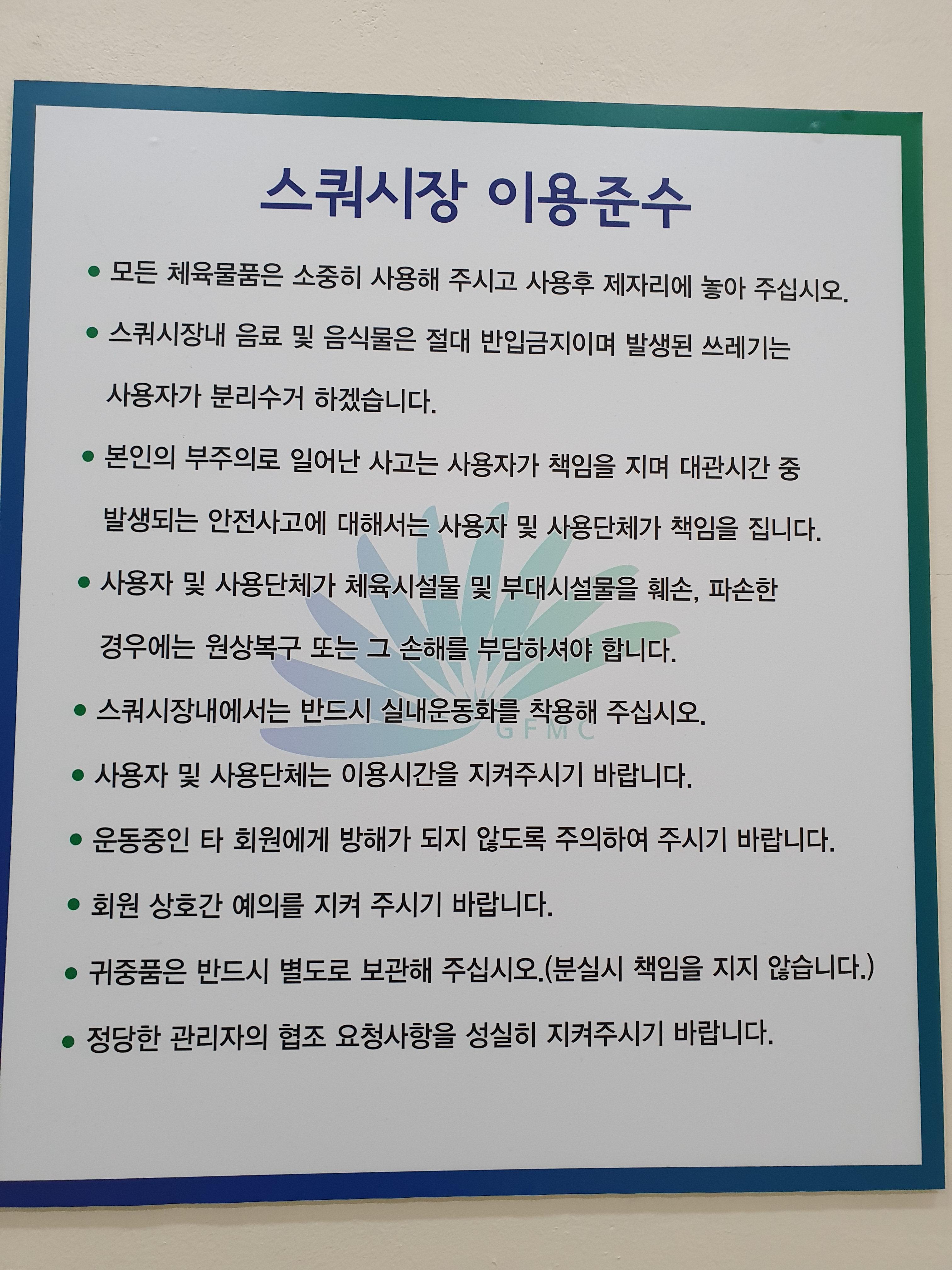 모두 함께 사용하는 스쿼시 코트 깨끗하고 안전하게 잘 사용합시다!