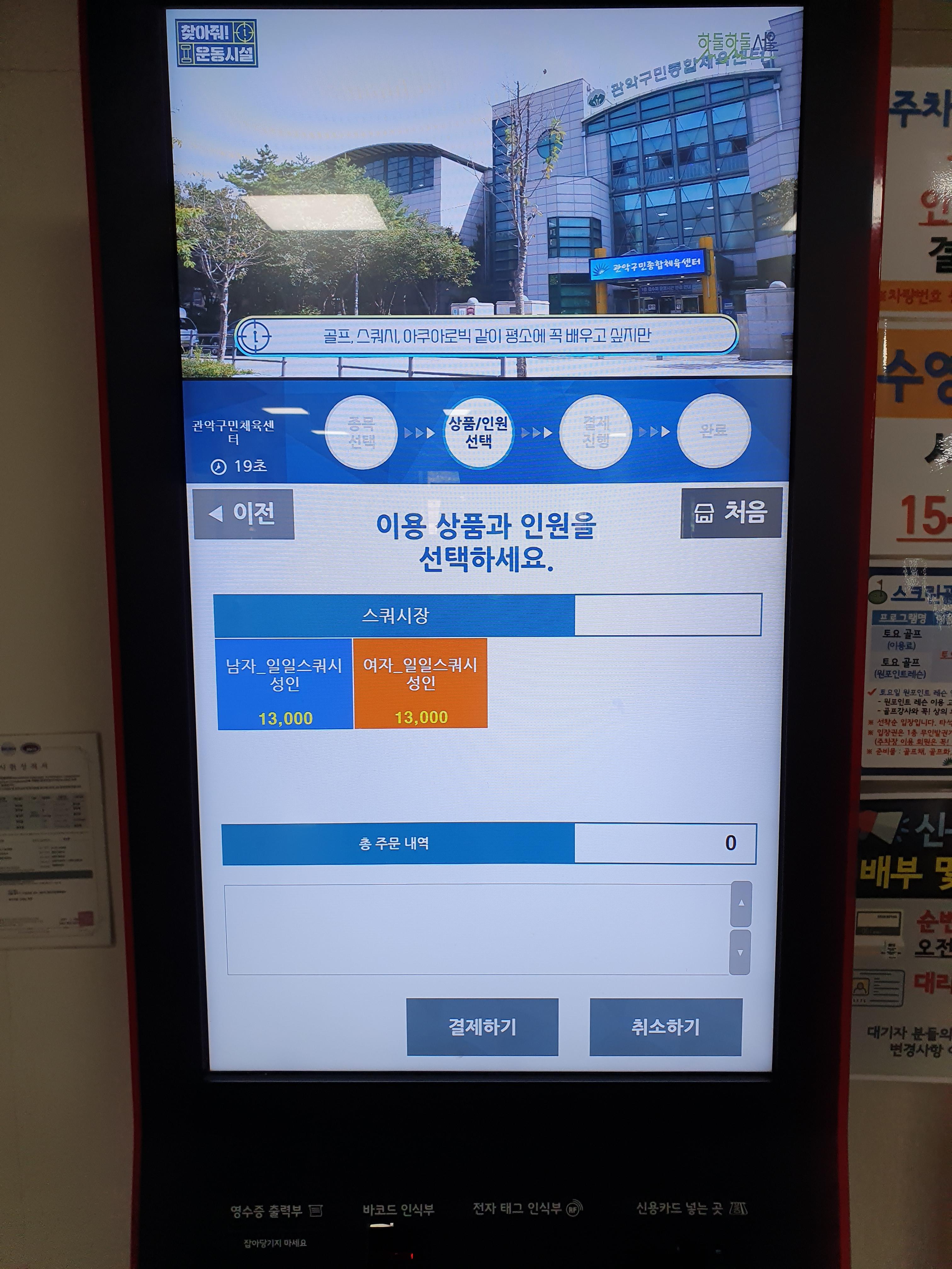 이곳에서 스쿼시 일일 입장권을 발권하는데요.