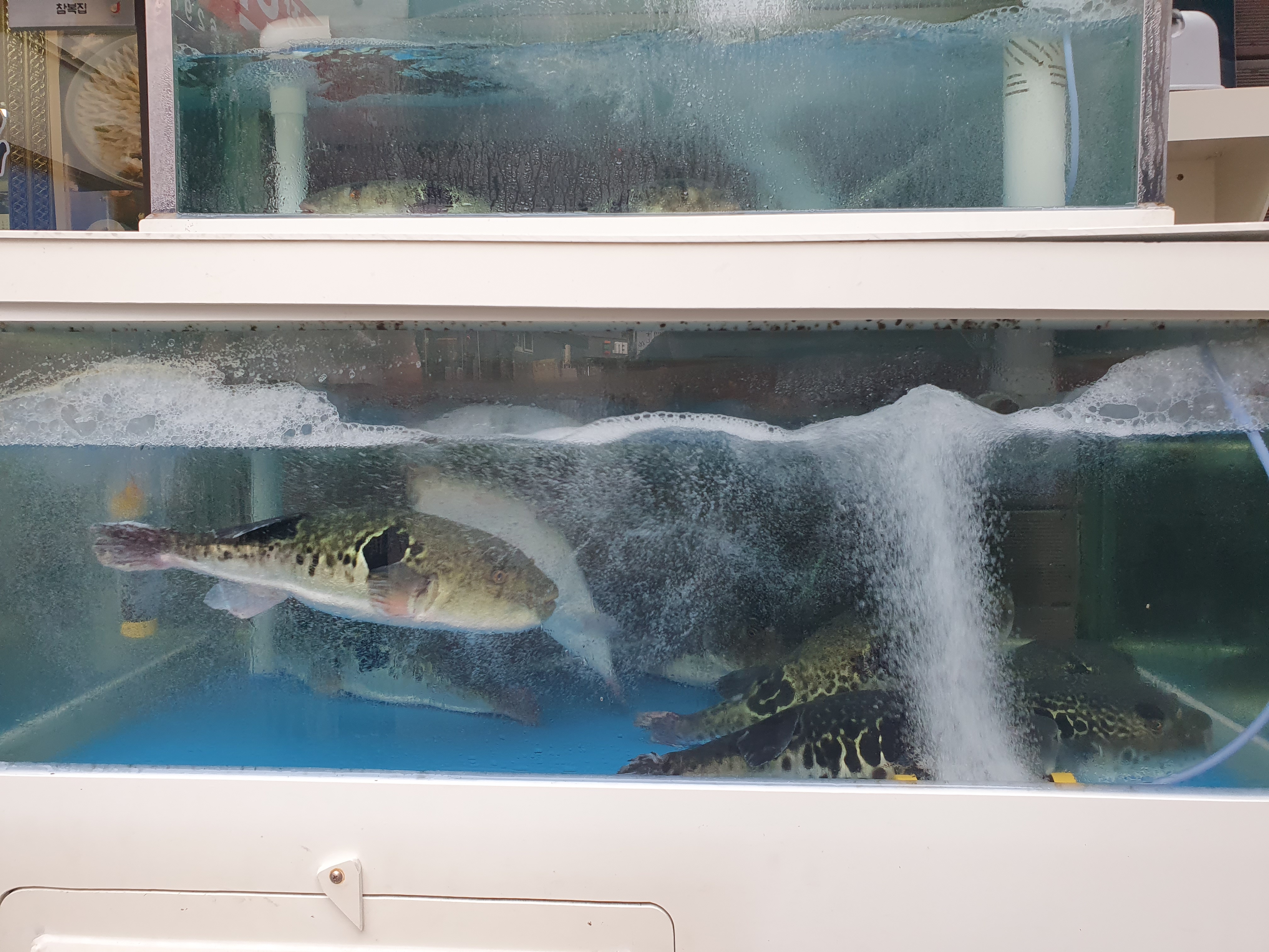 앞에 수조에는 복어가 저희를 기다리고 있네요.