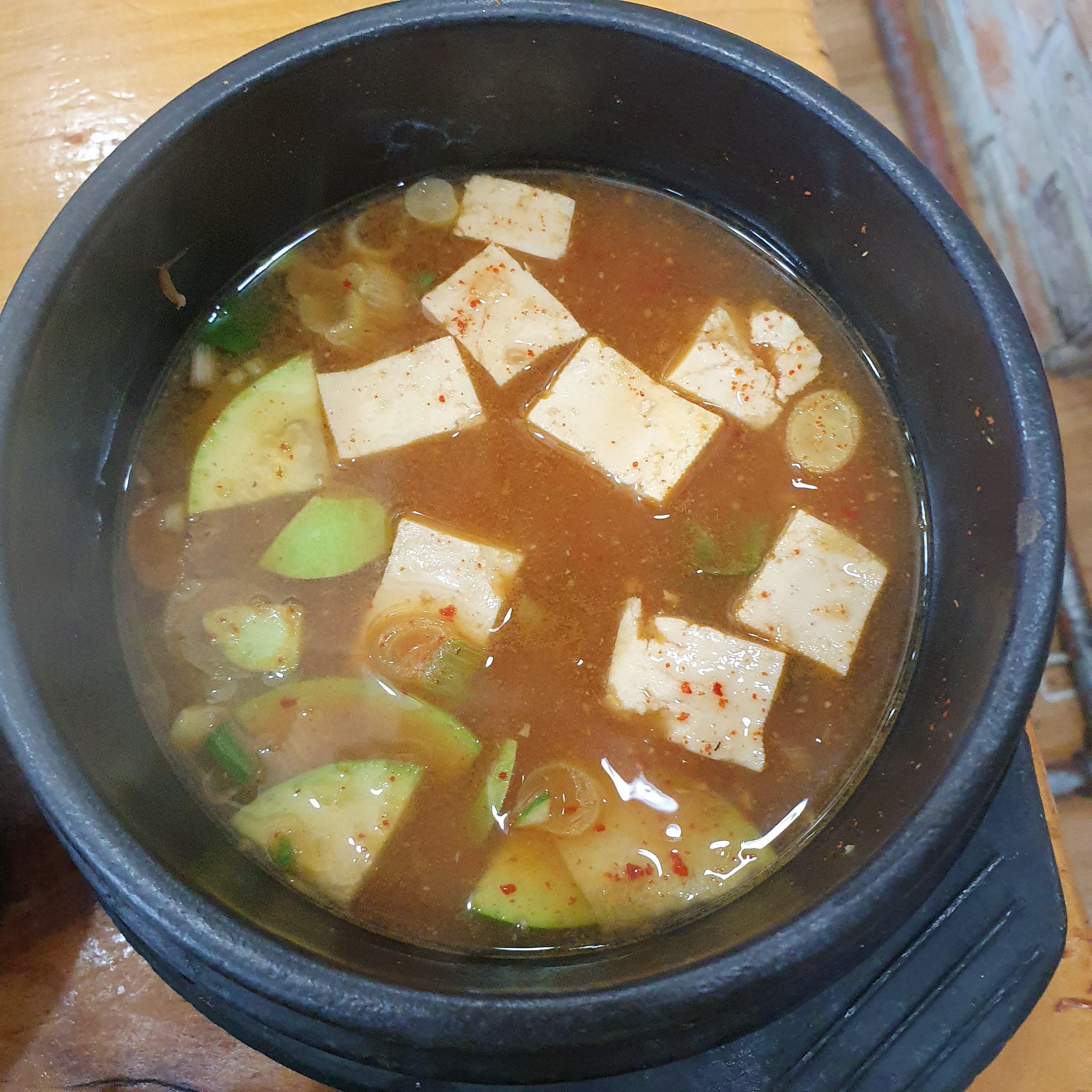 오른쪽은 한국인의 된장찌개입니다. 엄청 깊은 맛은 아니여도, 없으면 아쉬웠을 그 된장찌개입니다.