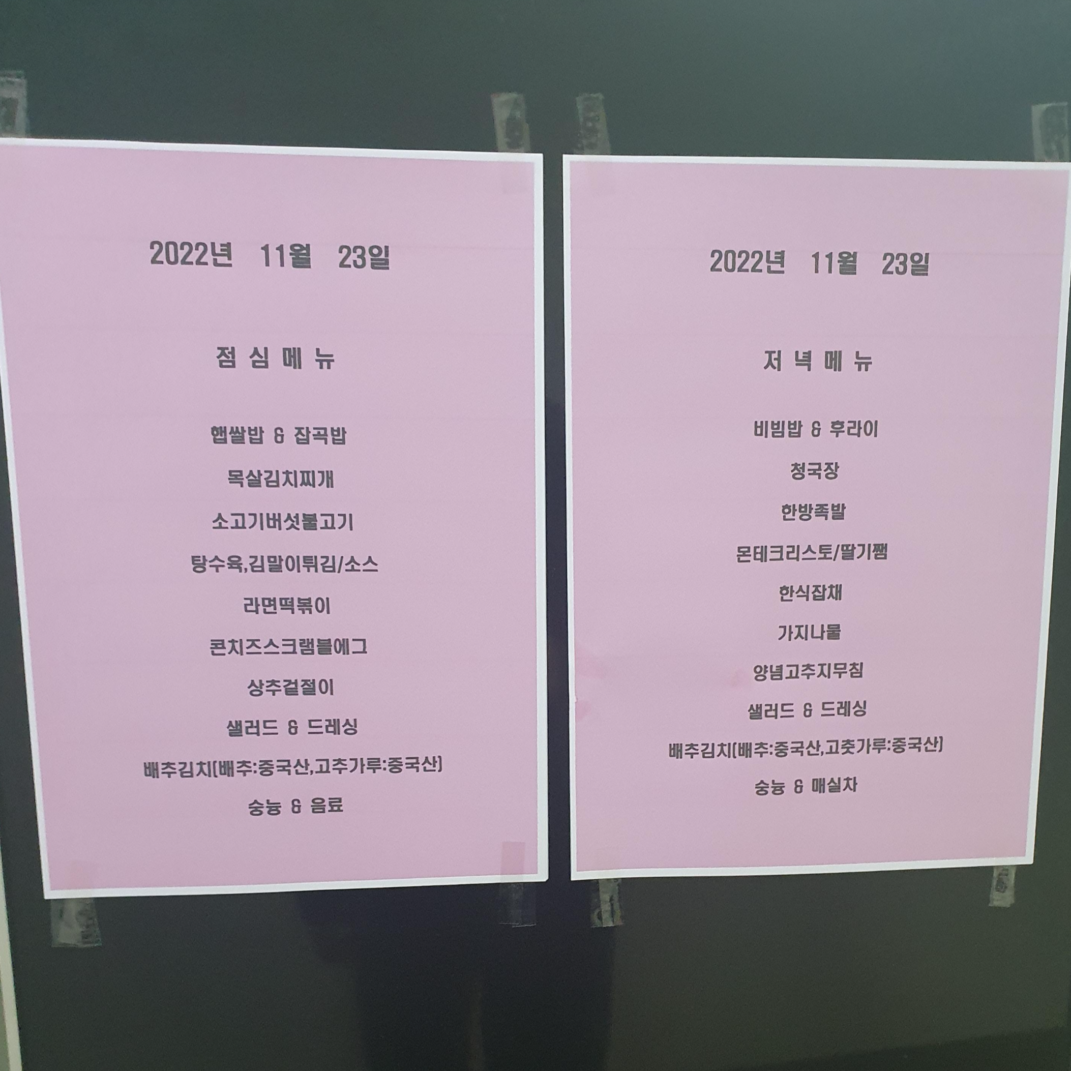 방문 당일인 2022.11.23(수)의 메뉴입니다.