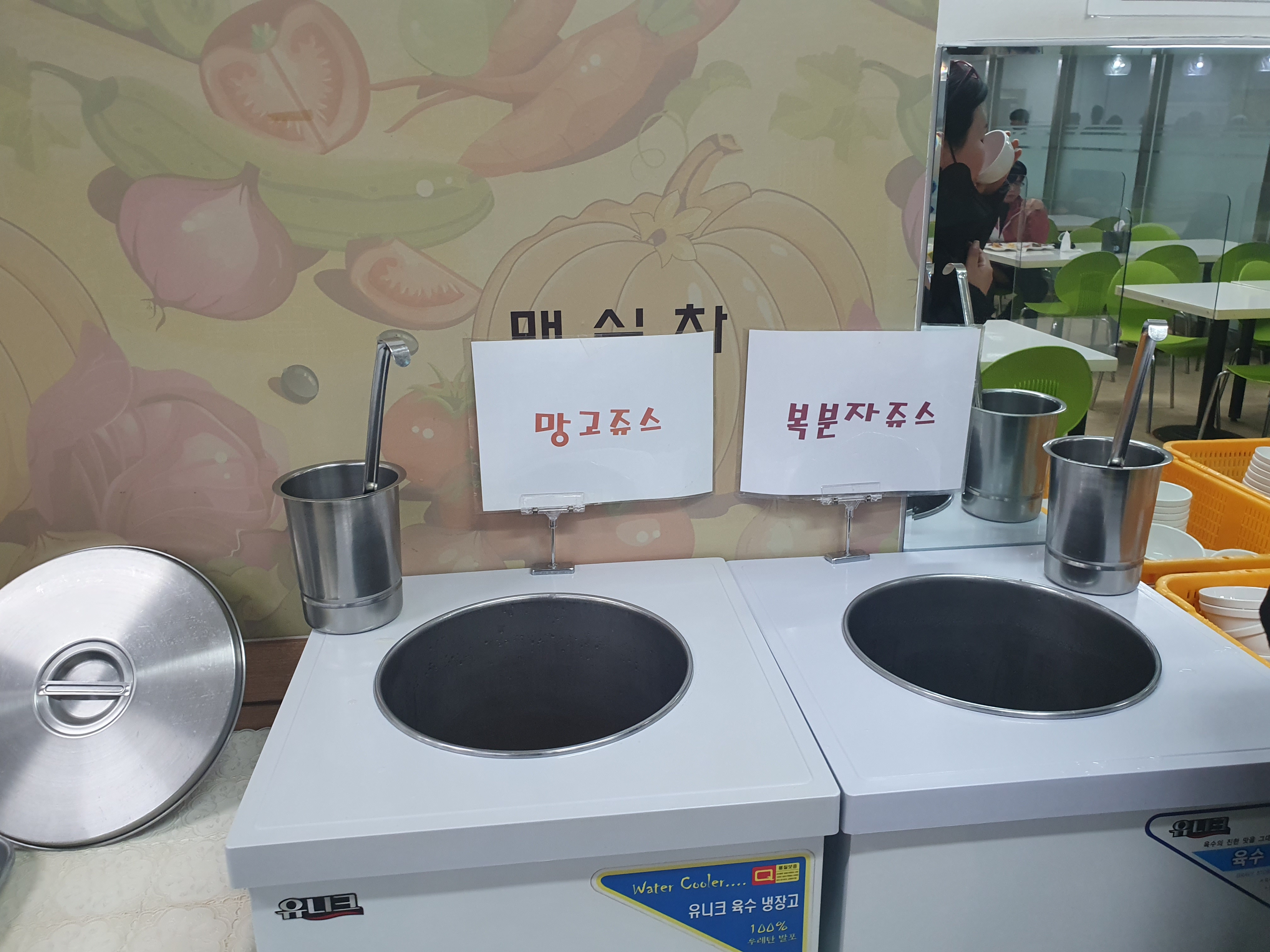 망고 쥬스와 복분자 쥬스 / 숭늉을 먹을 수 있는 공간도 마련되어 있습니다.
