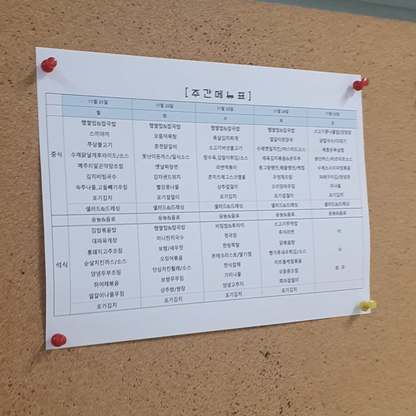 나가는 곳 근처에 이렇게 1주일치 식단을 적어두는 메뉴표가 함께 있습니다.