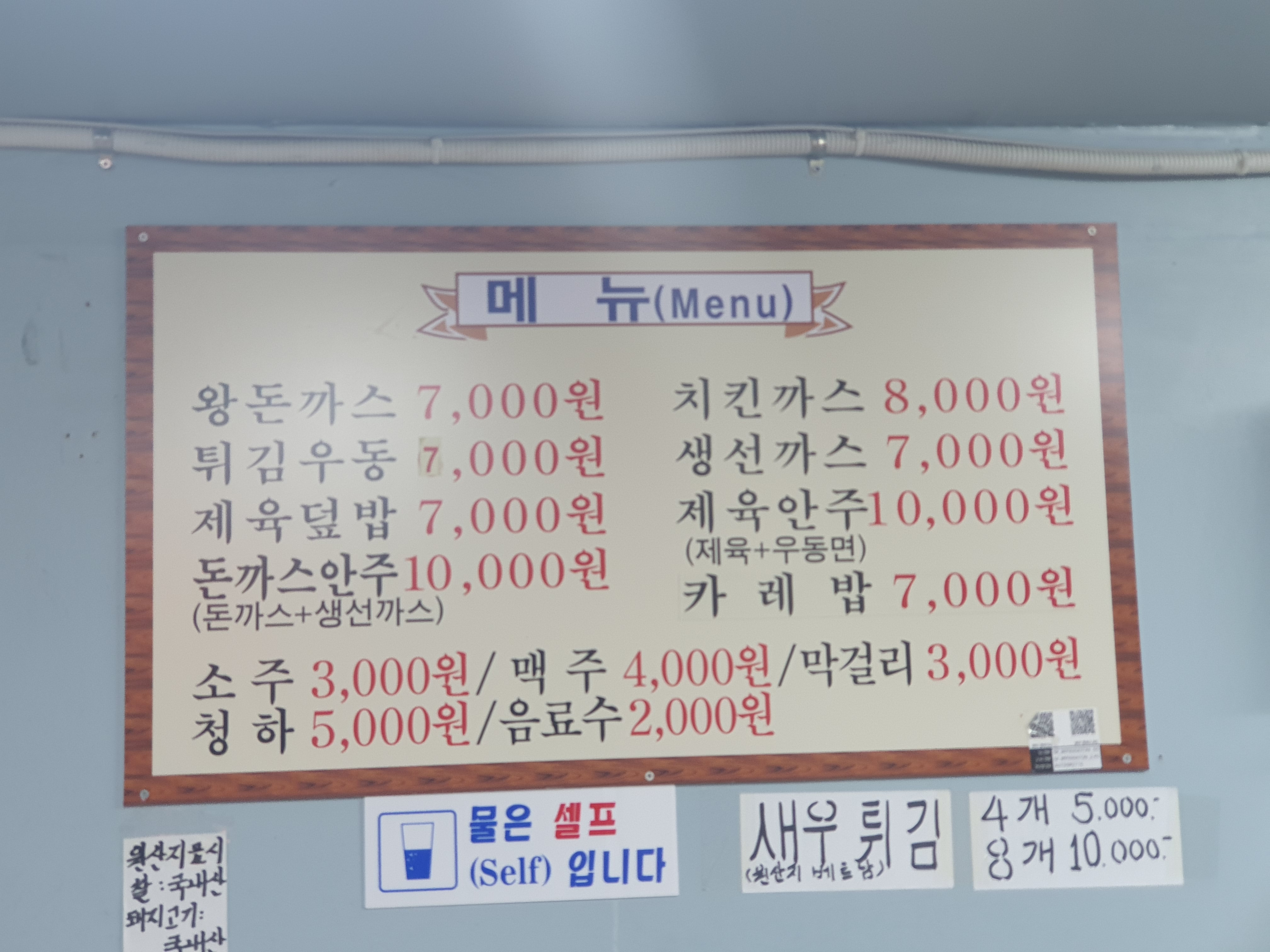 전체적으로 가격이 저렴하다는 생각이 드는 메뉴판입니다!