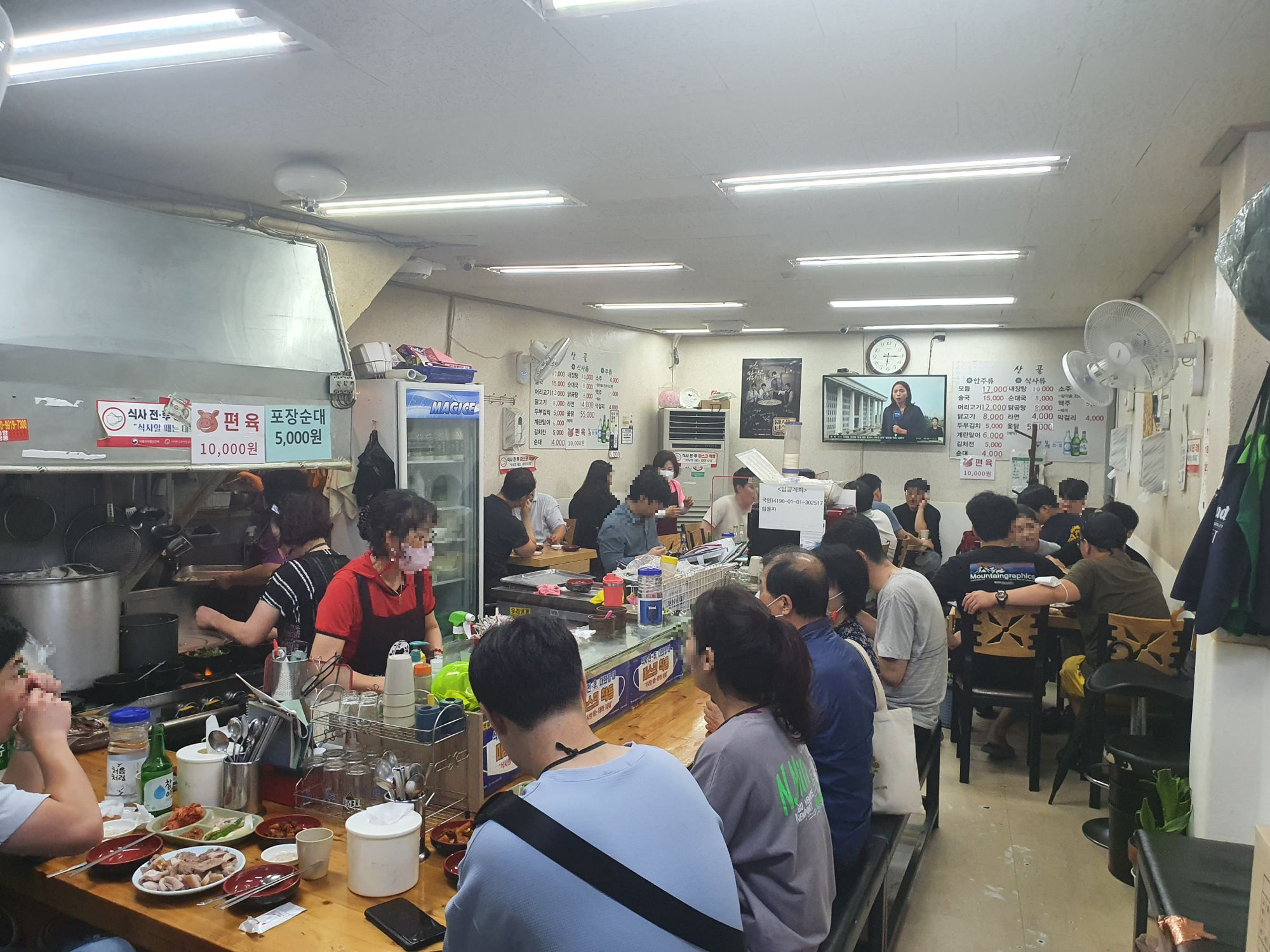 이모님들이 조리하는 곳에 바 자리가 있고 안쪽에 테이블이 있습니다.