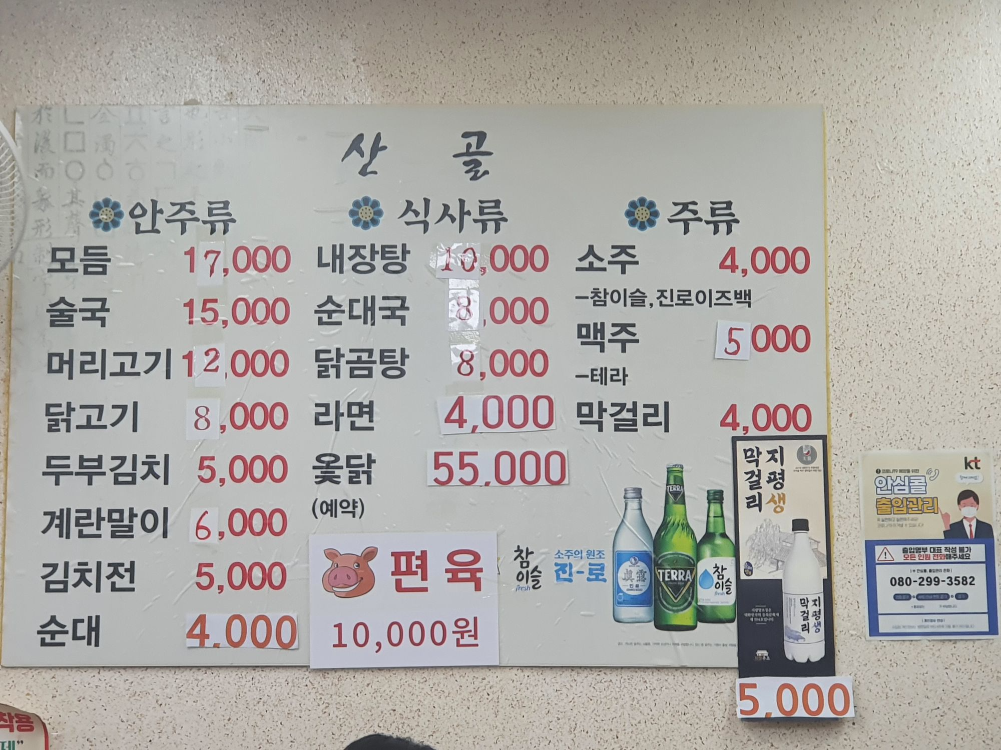사실 두부김치랑 김치전은 누가하든 평타의 맛을 하며, 산골은 가격도 저렴하니 나쁘지 않았습니다.