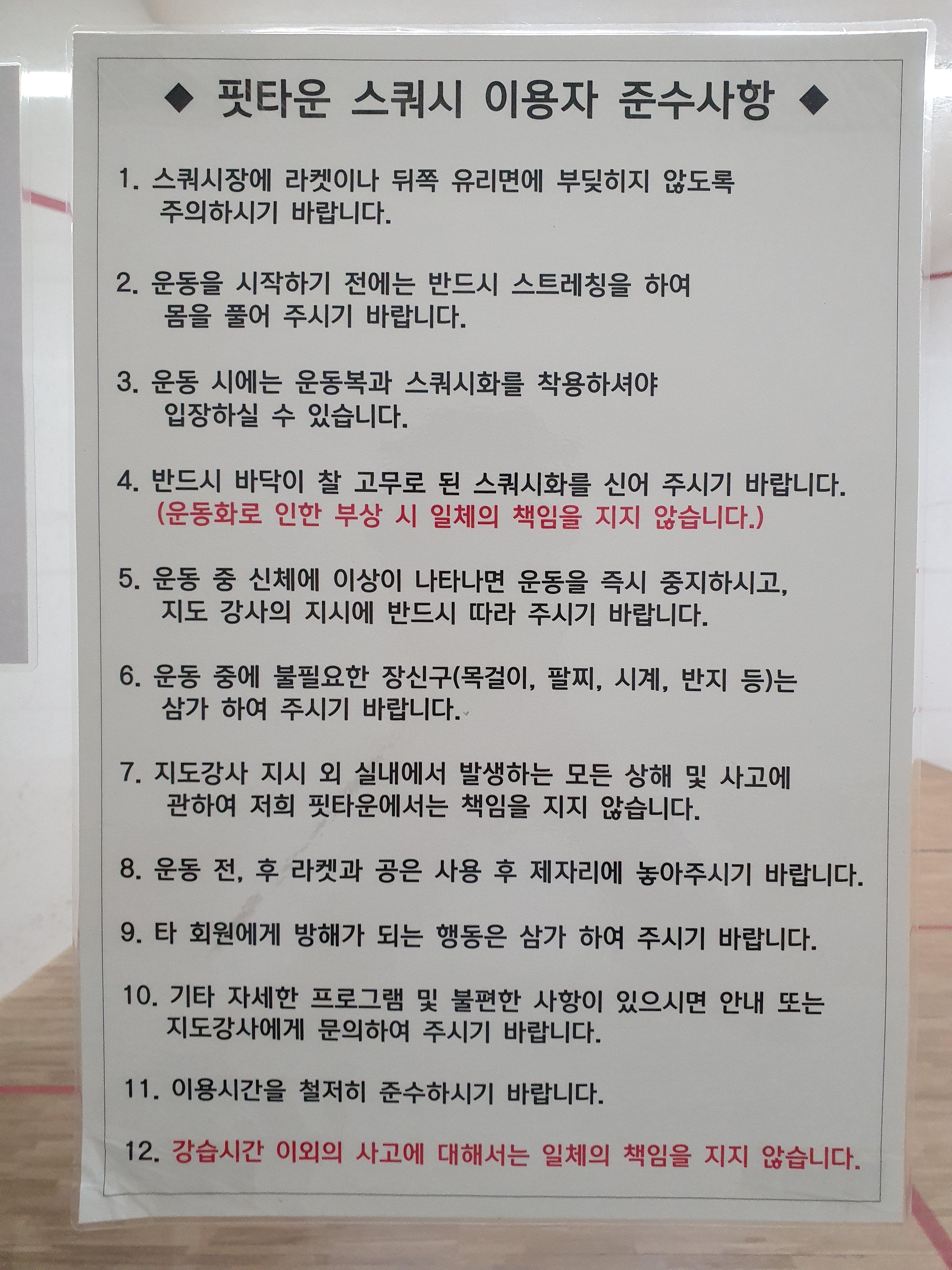 당연한 이야기지만 양평역 핏타운 스쿼시장을 이용하기위한, 준비물을 나열해 보도록 하겠습니다.