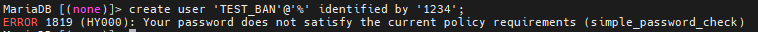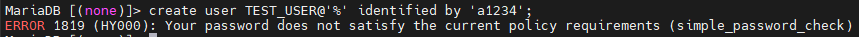 ERROR 1819 (HY000): Your password does not satisfy the current policy requirements (simple_password_check)