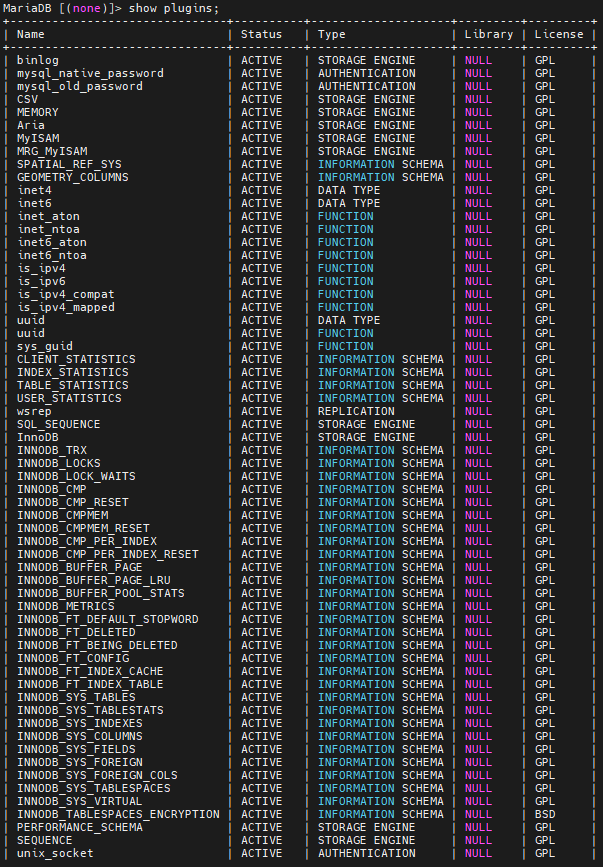 > show plugins;