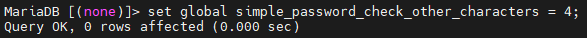 > set global simple_password_check_other_characters = 4;