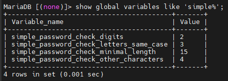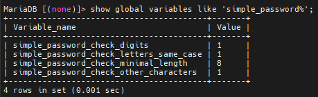 패스워드 복잡도를 설정하기위해 사용 할 simple_password_check 플러그인은 MariaDB와 함께 배포가 되지만,