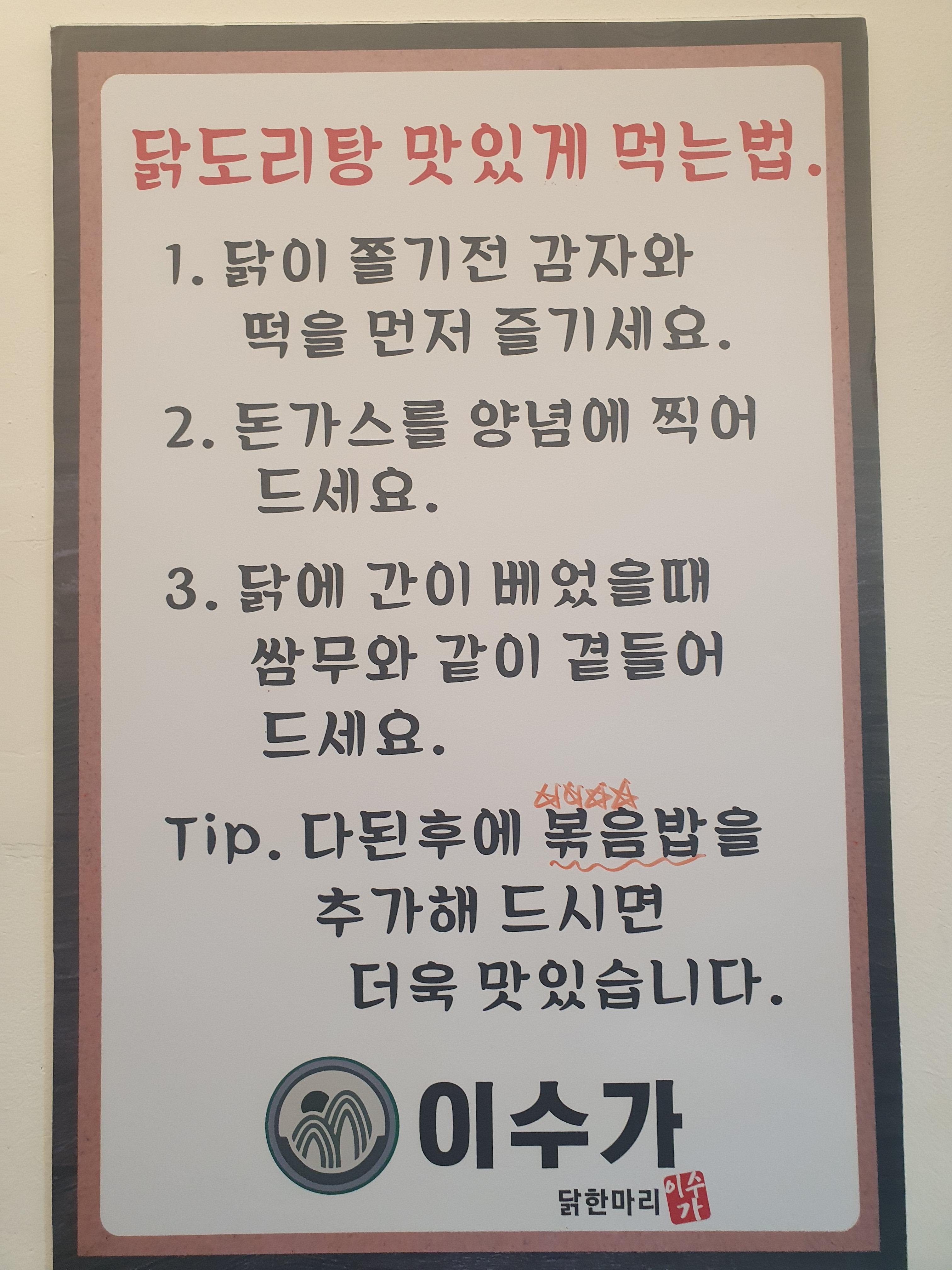 요즘 닭한마리 집이 많아졌지만 이수가에는 평범하지만 특별한 사이드 메뉴도 나오기 때문에