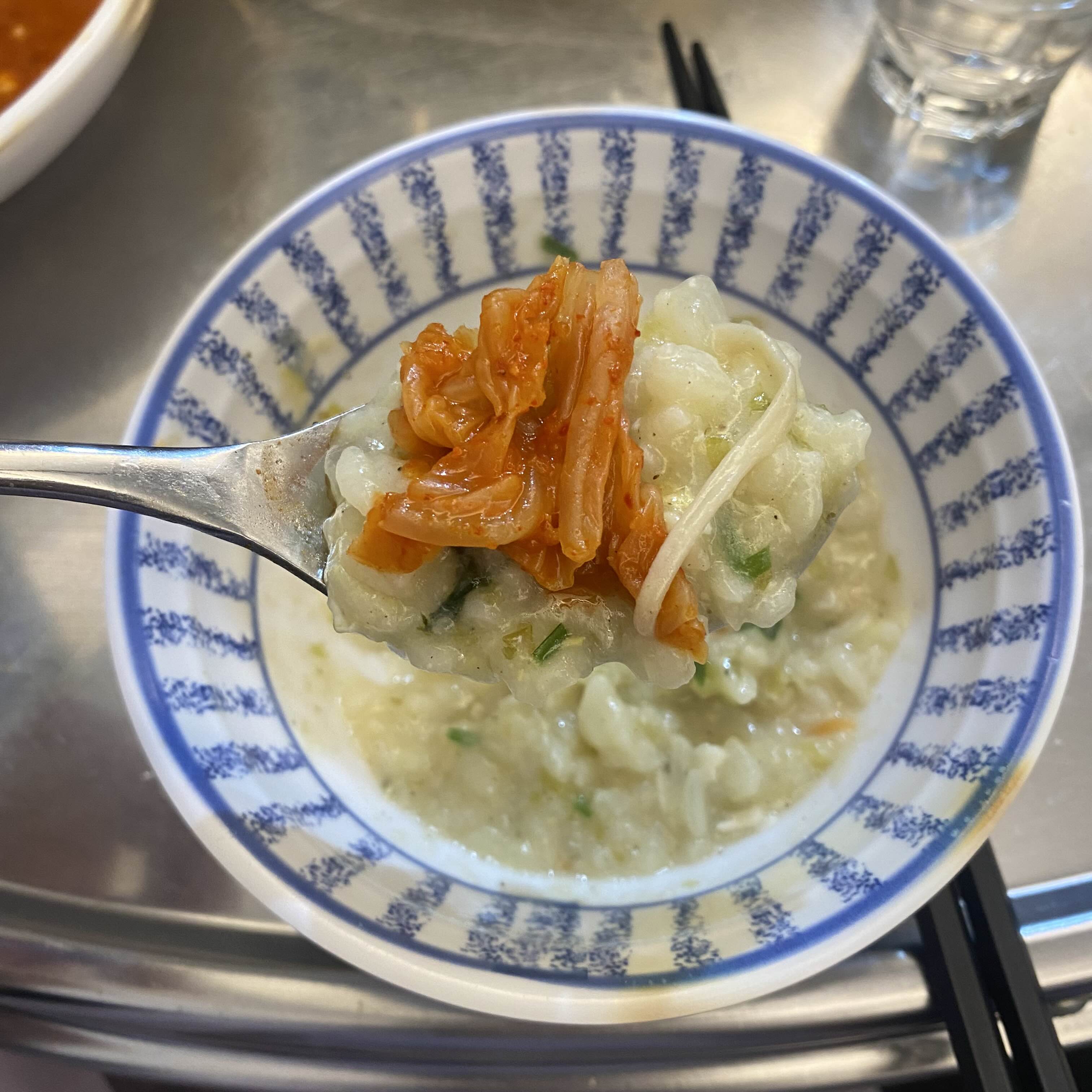 사장님의 정성으로 만들어진 죽 한 입 먹는데, 역시 이 국물은 실망시키지 않아요🤭