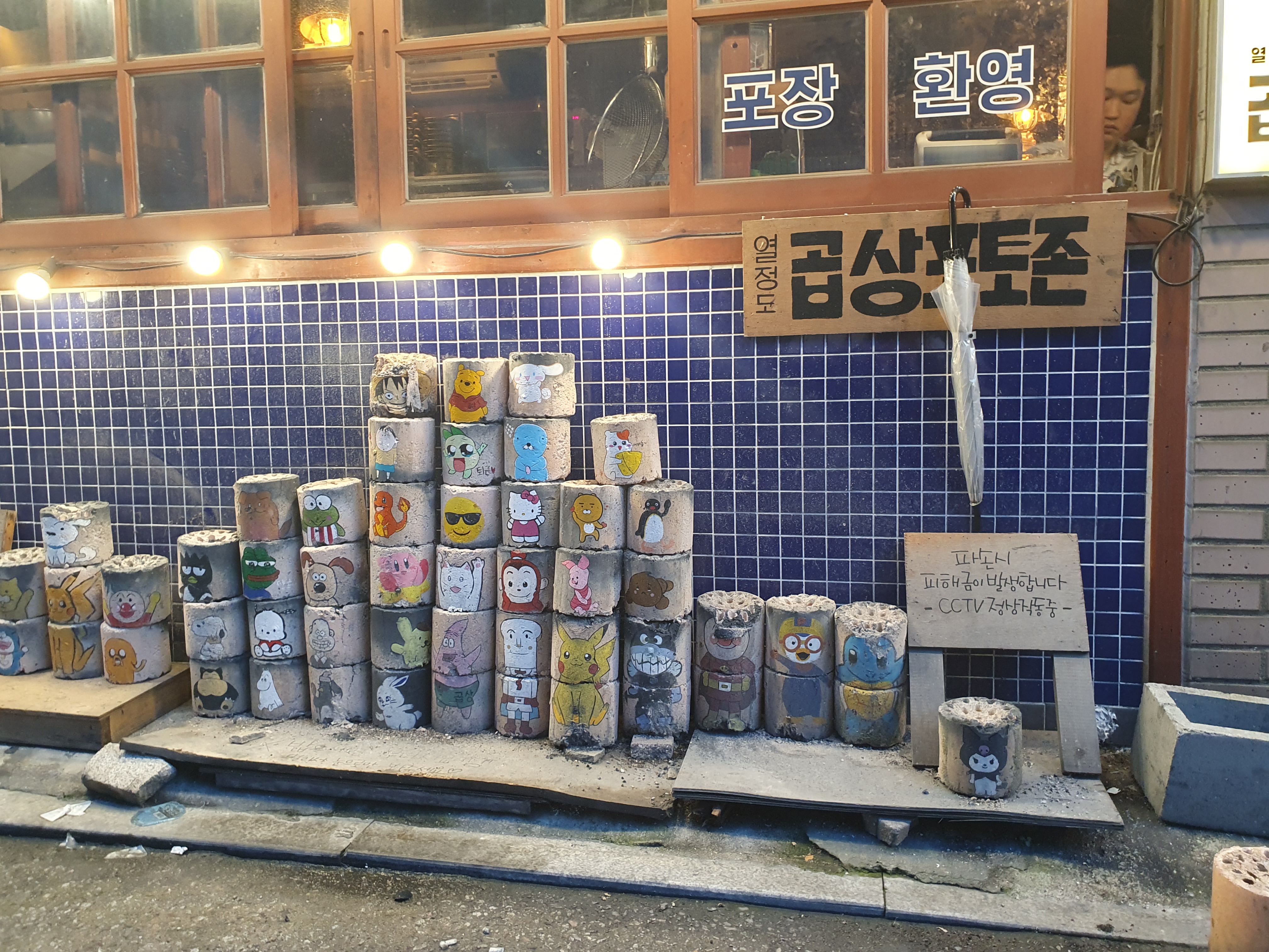외부는 레트로한 느낌이 물씬 나면서 연탄을 이용해서 포토존을 꾸며놨어요.웨이팅하면서 사진 찍고 구경하기 좋을 것 같아요!