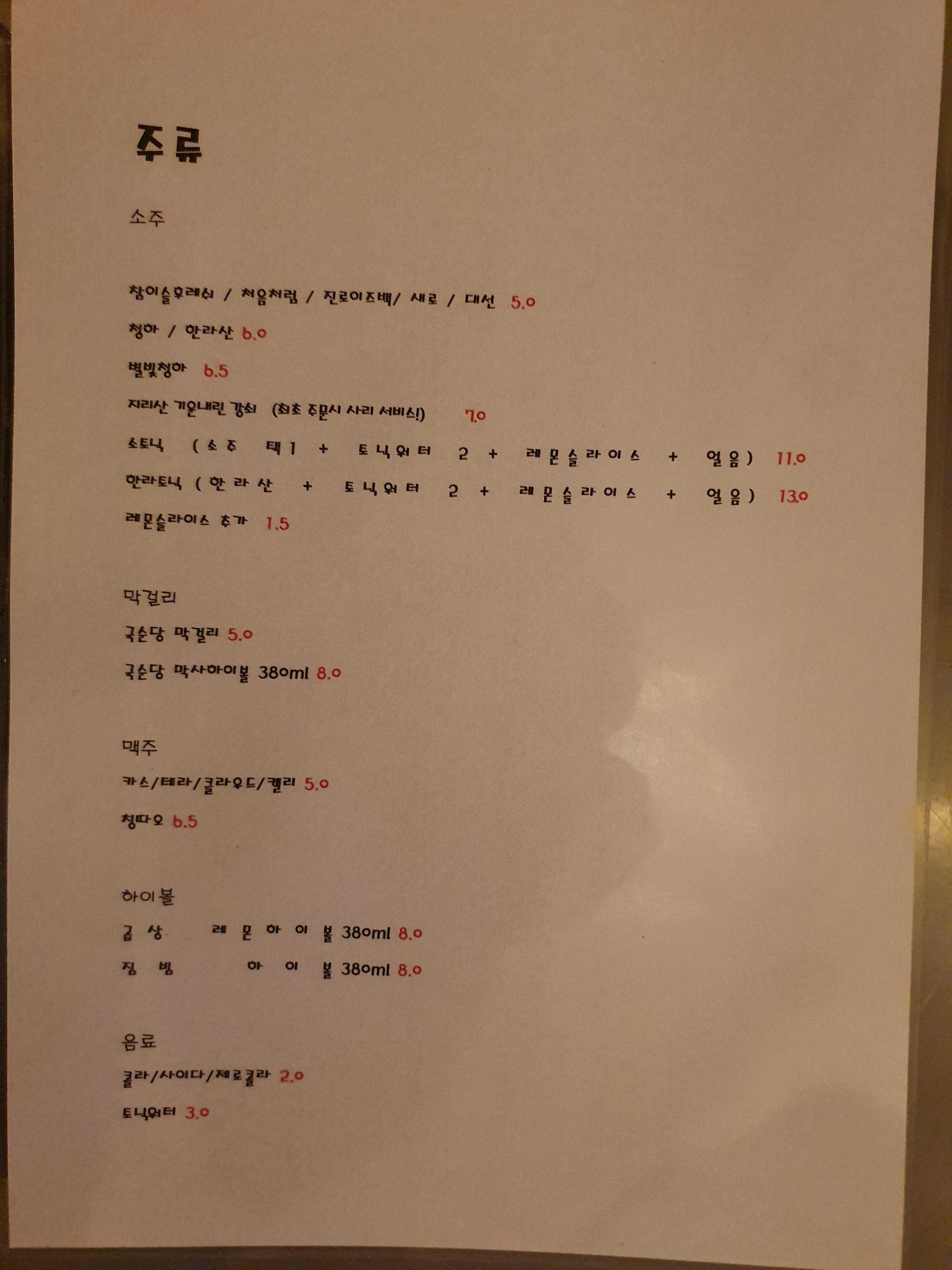 주류도 소주, 맥주, 막걸리부터 하이볼까지 종류별로 있어서 취향껏 선택하면 될 것 같아요🍻