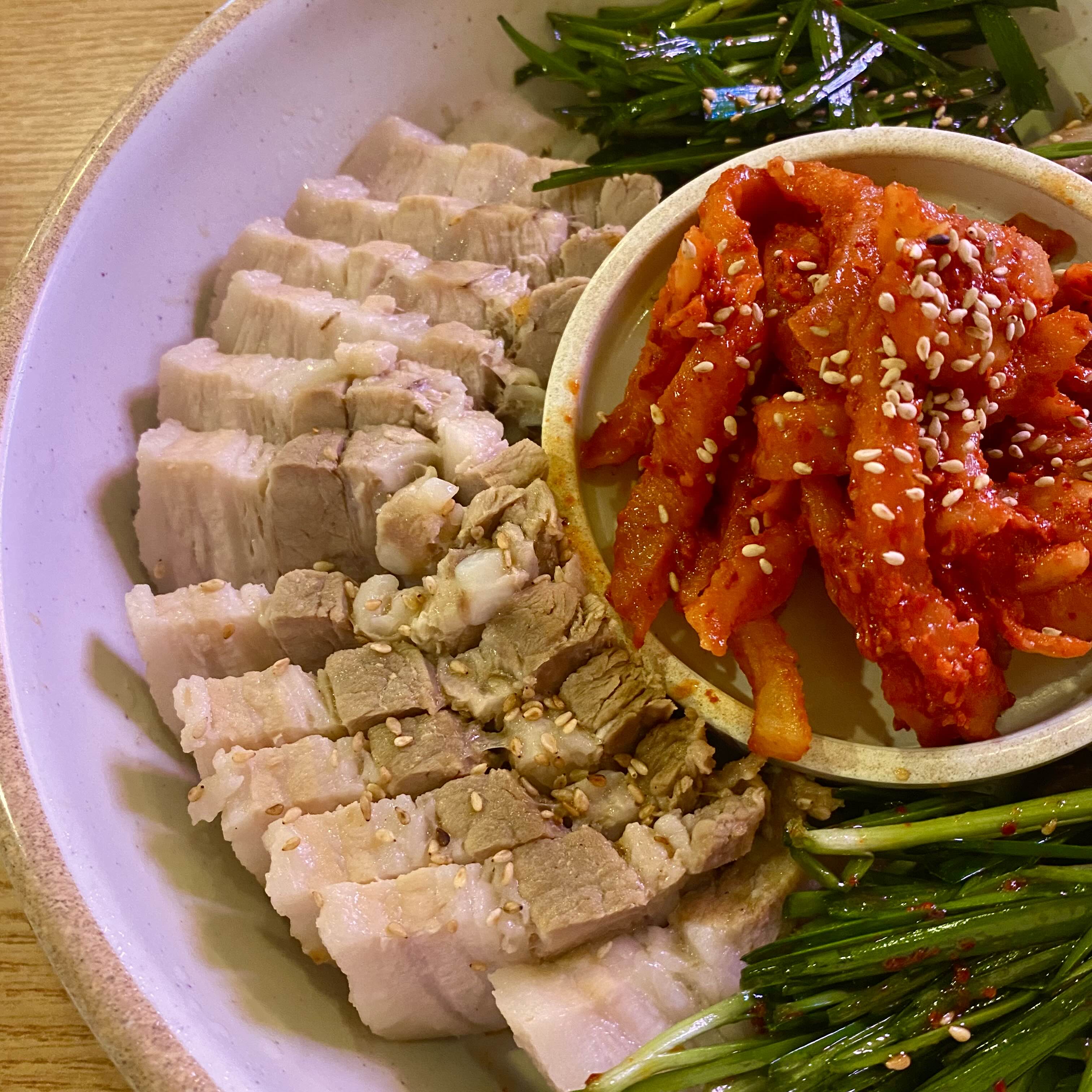 보쌈은 살짝 두툼하니 비계와 살의 조화가 딱 적당했습니다. 너무나 부드럽고 맛있었습니다.