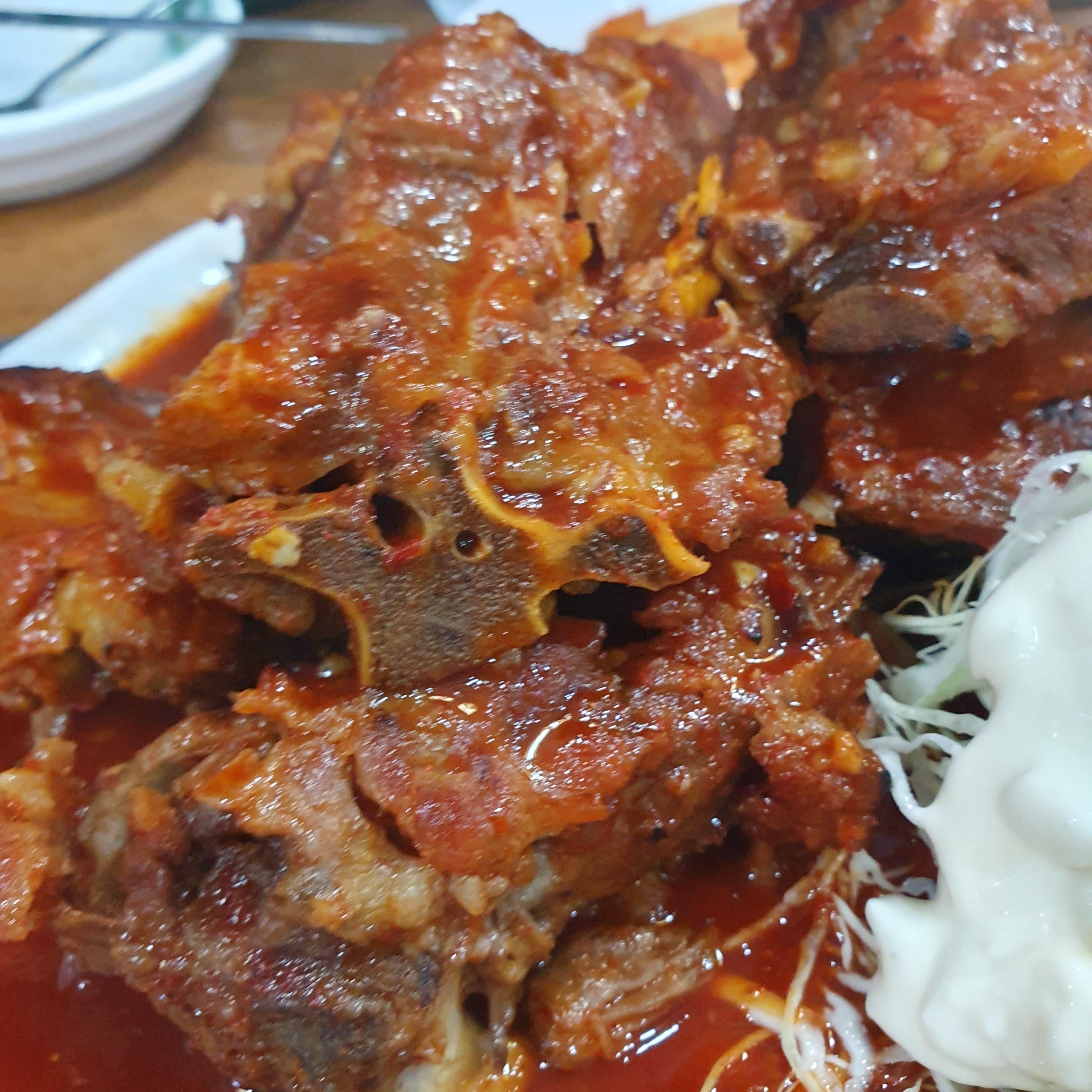 매운양념의 뼈는 잘익어서 너무 부드럽게 잘 발라지고, 매워서 그런지 샐러드 또한 너무 맛있습니다.