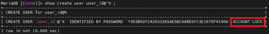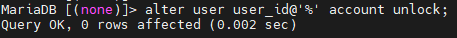 MariaDB의 특정 사용자 계정의 로그인 불가 상태로 만드는 방법이다.