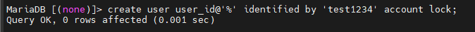 create [user_id]@'[host_address]' identified by '[password]' account lock;