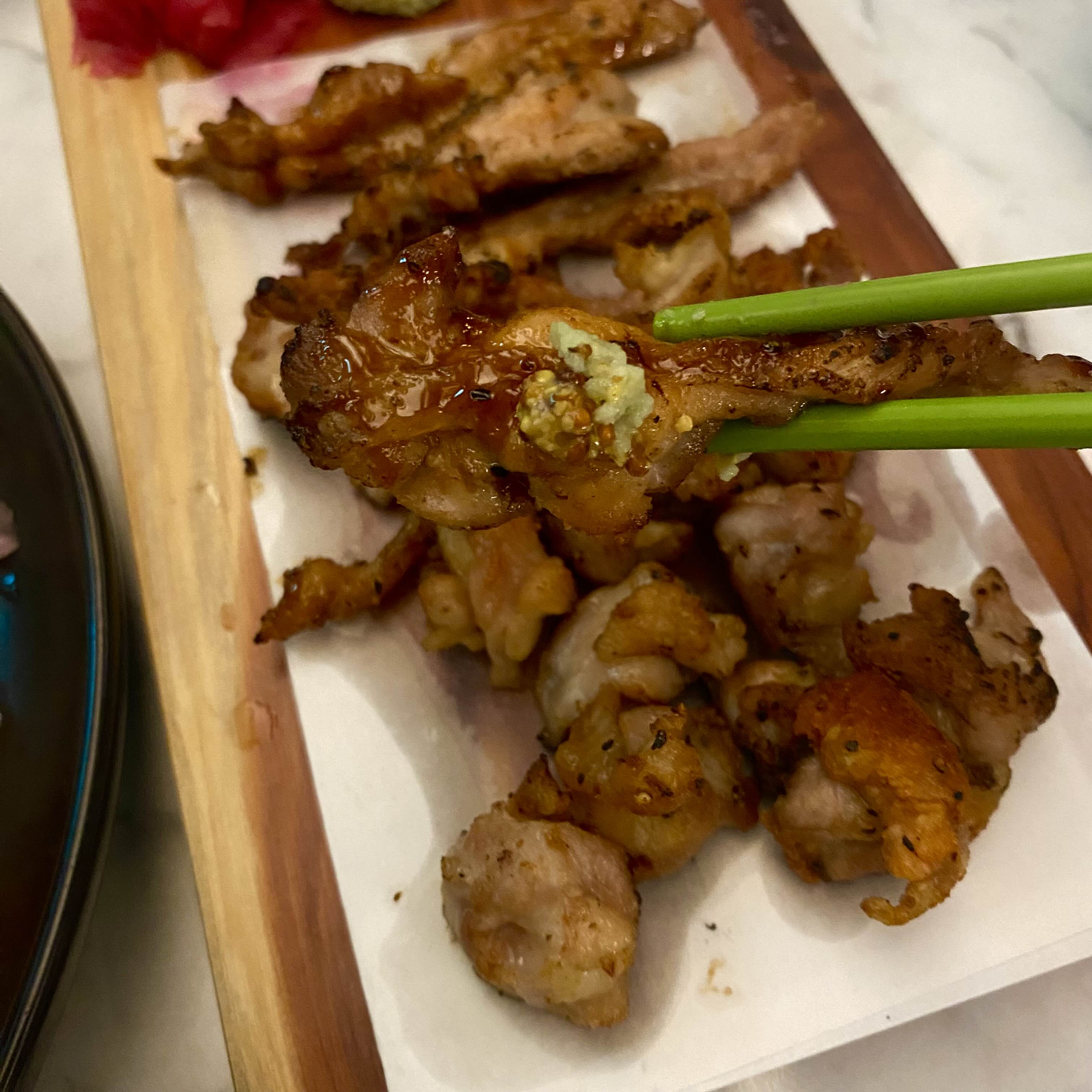 그 다음 나온 숯불 닭구이는 목살과 연골 부위인데 취향저격이었어요...
