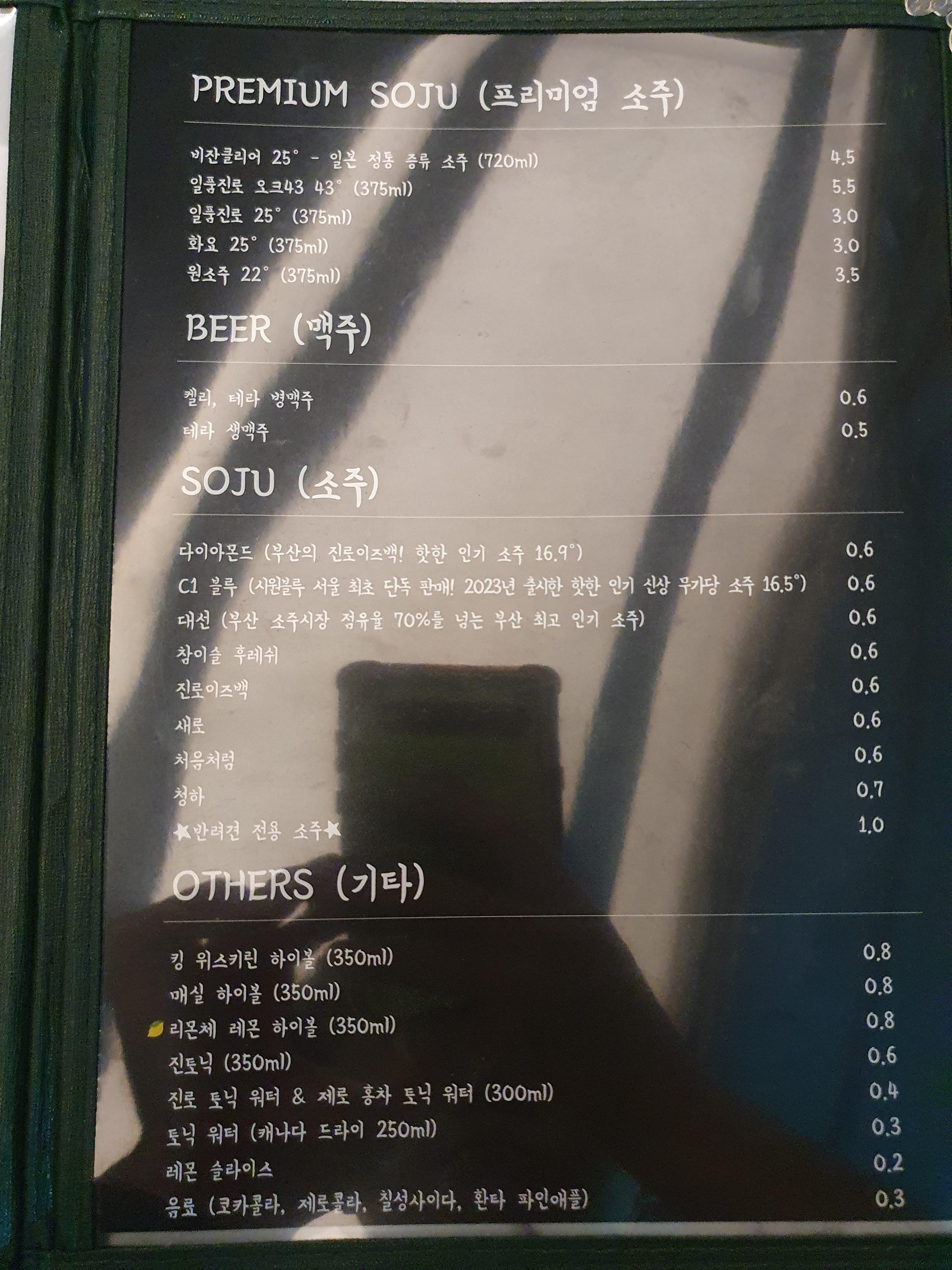 술은 부산 소주 대선과 C1을 마셔봤어요🥂