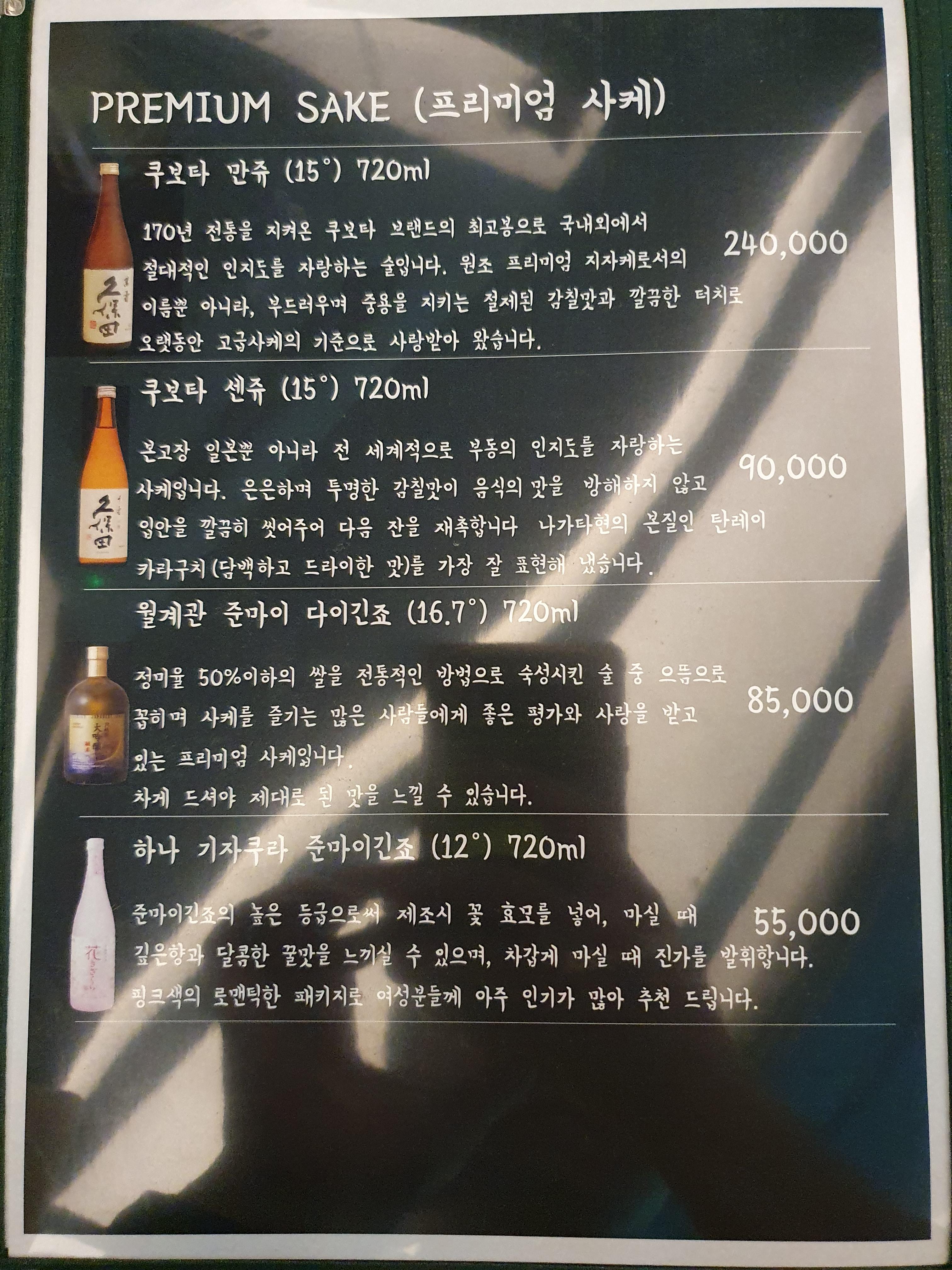 술도 소주 종류도 다양하고 사케 종류도 많아서 취향껏 먹을 수 있어서 좋네요👍🏻