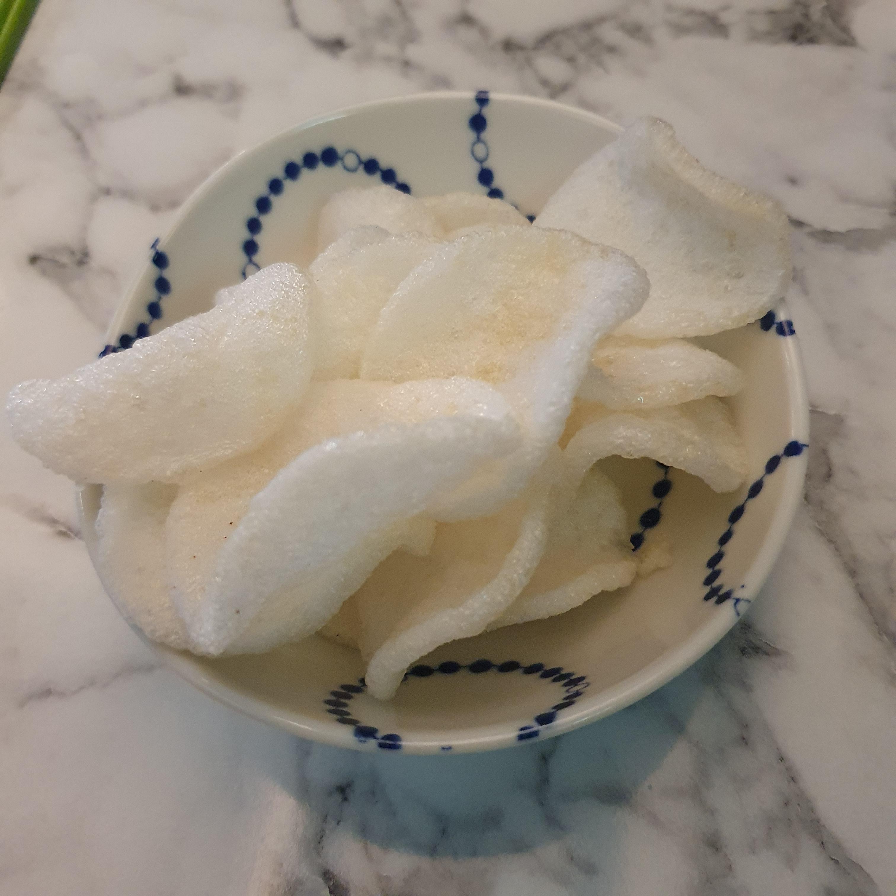 주문하고 나니 기본 안주 알새우칩과 사시미 찍어먹을 소스 3종(기름장, 초고추장, 간장)이 나왔어요