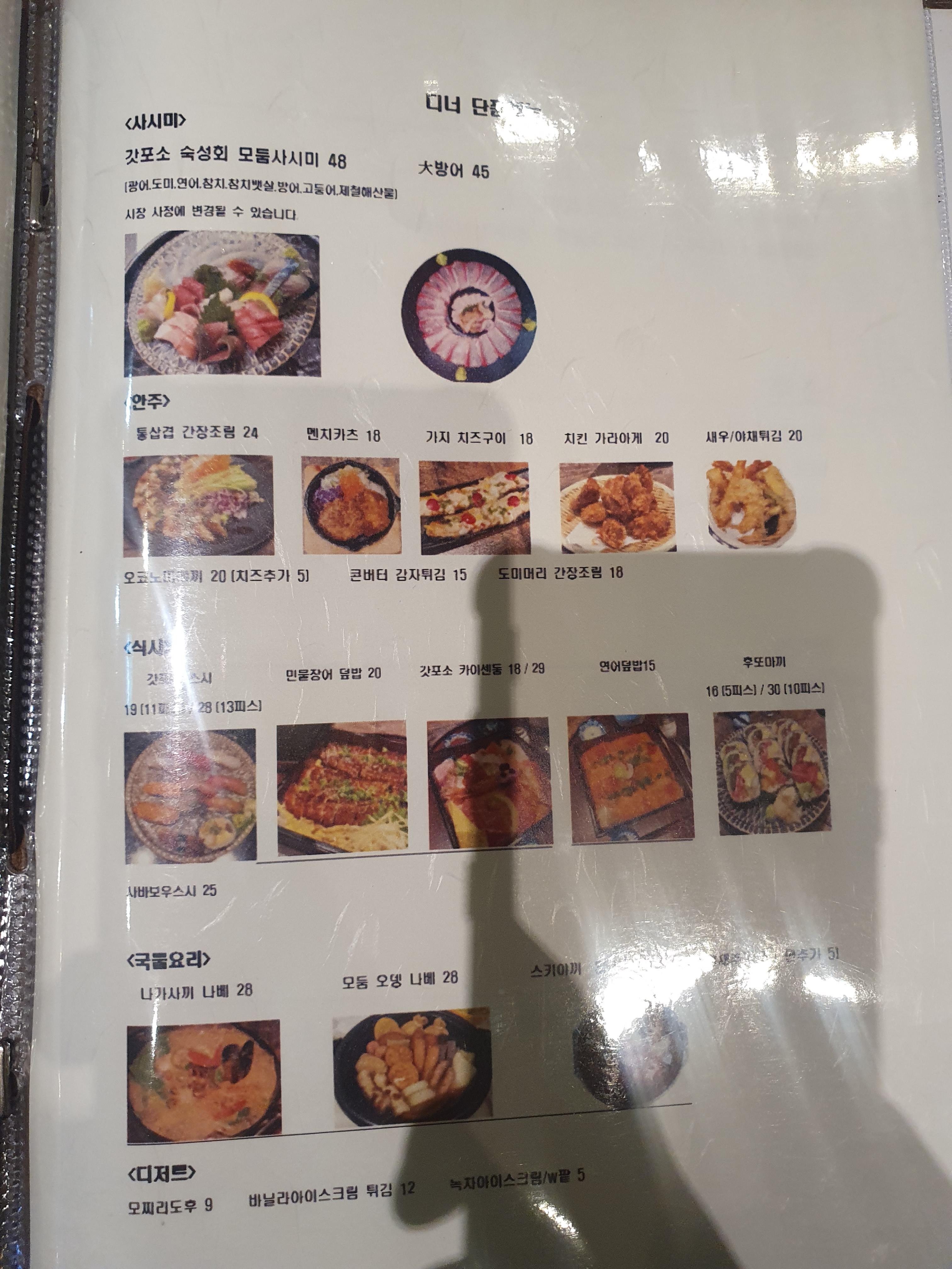 갓포소 숙성회 모둠사시미를 주문하려하니 48000원은 2인분 기준의 메뉴고 1인당 1점씩 먹을 수 있게 나온다고 하더라구요.