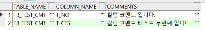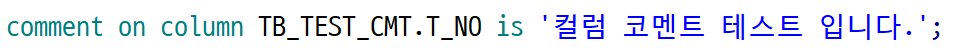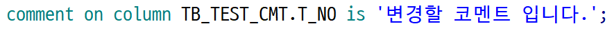 컬럼에 대한 코멘트 추가, 변경, 삭제 또한 테이블 코멘트 명령어와 같이 하나의 명령어로 모두 해결이 된다.