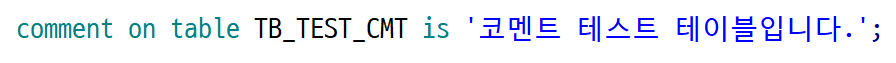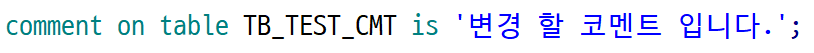 테이블에 코멘트를 추가하기 위해서는 위와 같은 명령어를 통해 추가 한다.