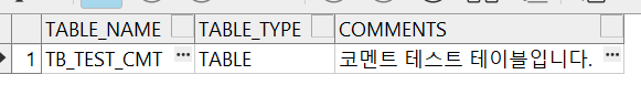 특정 테이블의 코멘트를 조회하기 위해 아래와 같은 명령어를 실행하면 다음과 같은 값을 얻을 수 있다.
