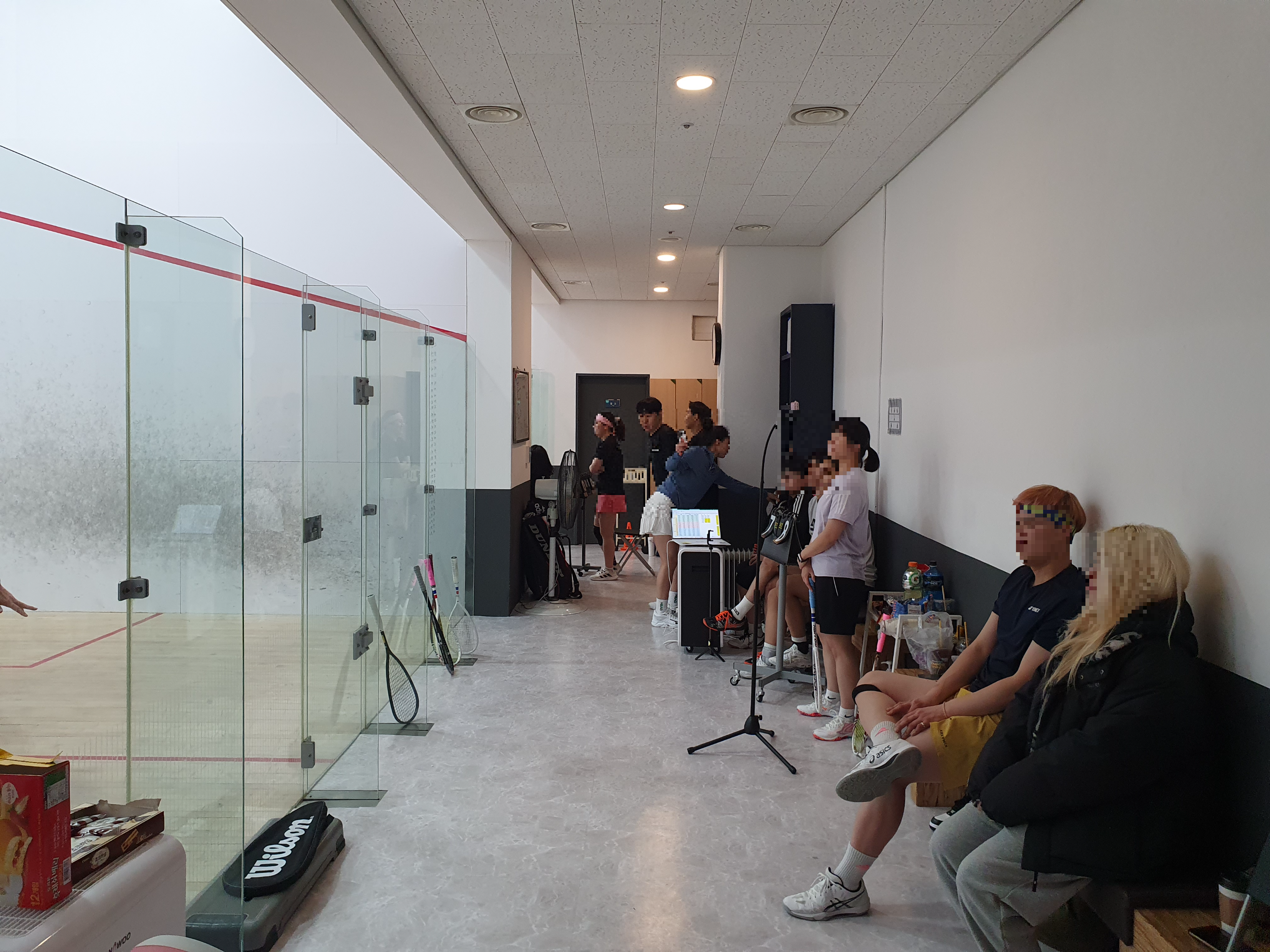 이렇게 스쿼시 코트와 복도 대기석이 조그마하게 준비되어 있습니다.