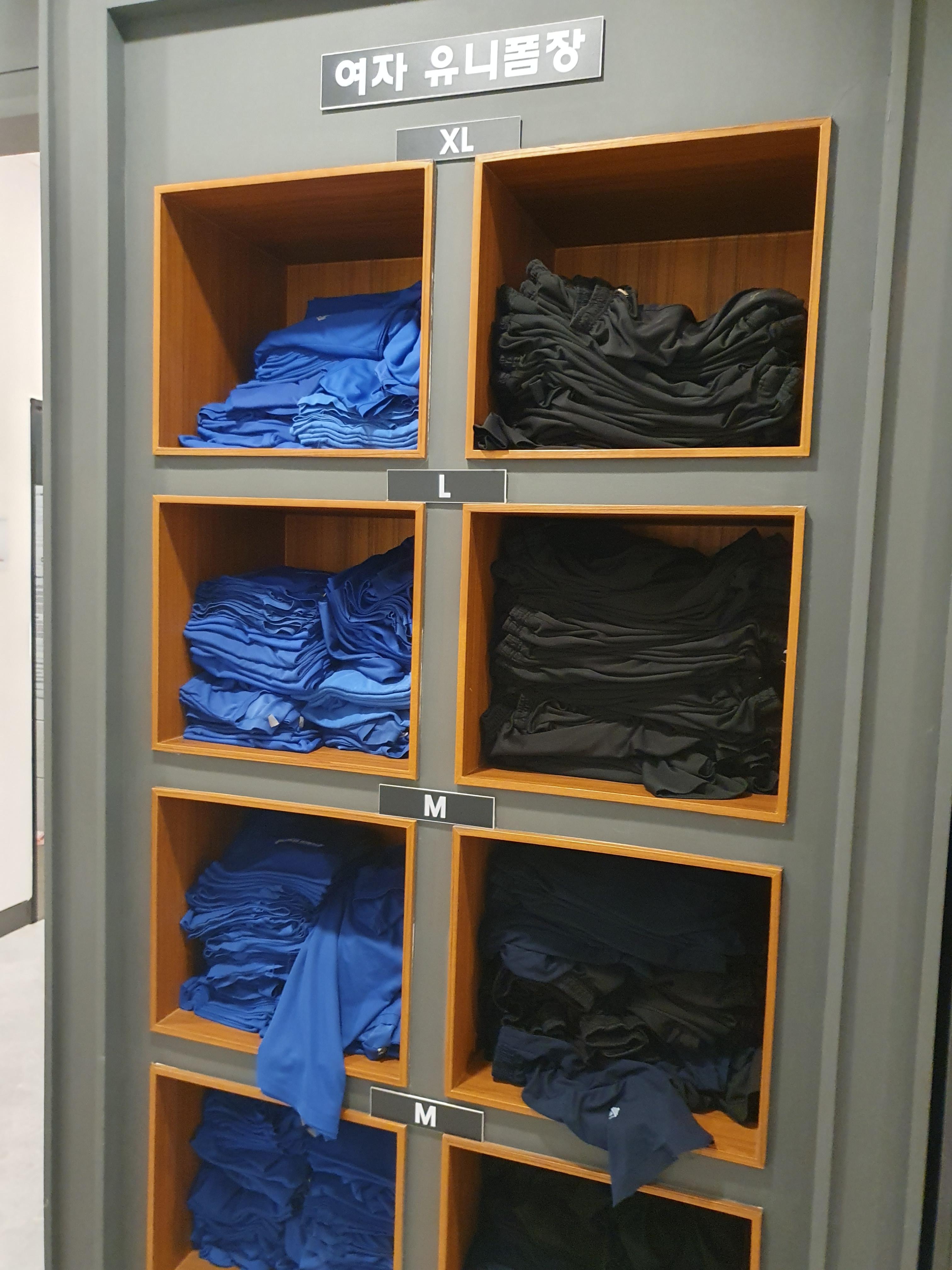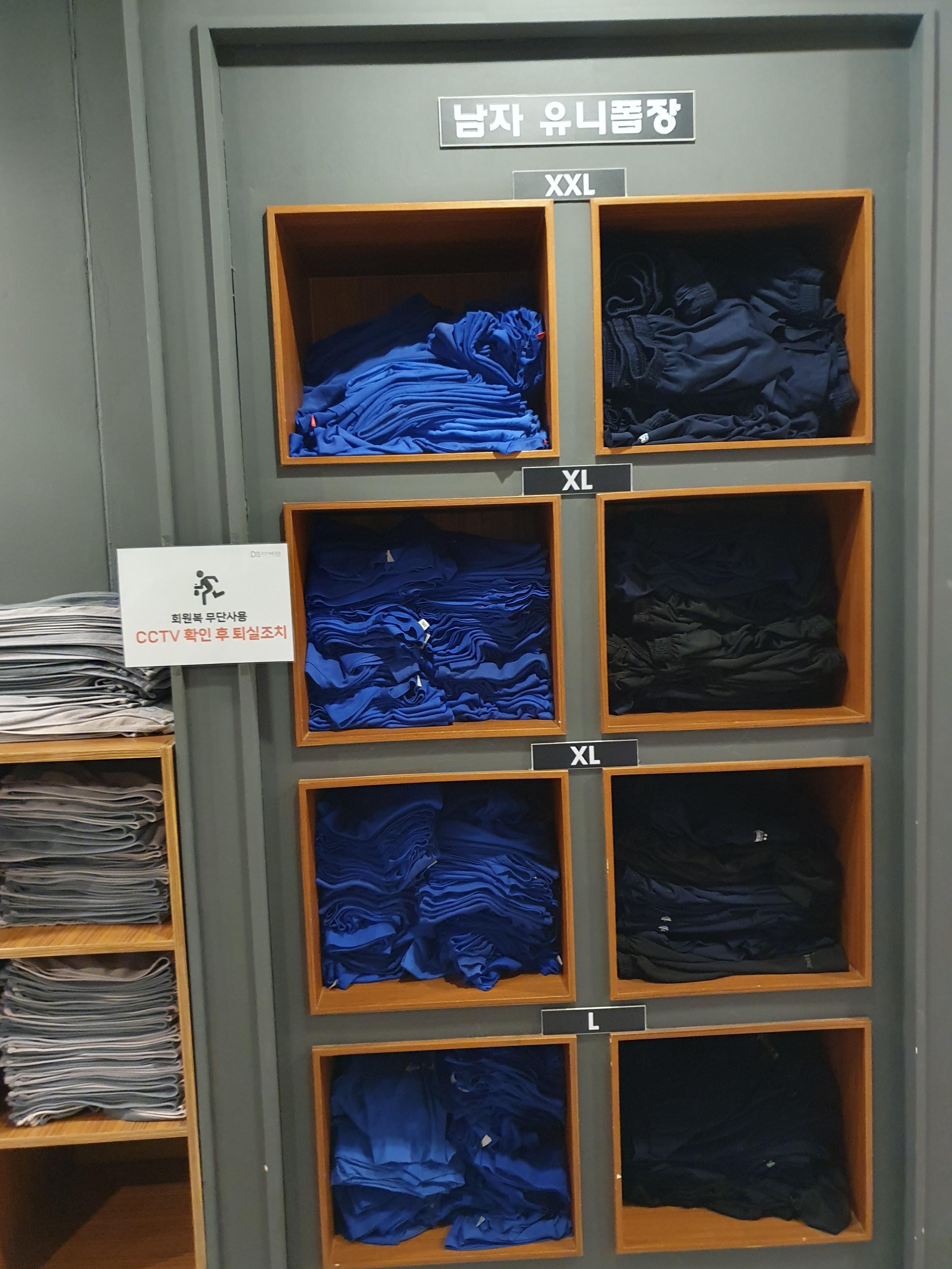 탈의실도 매우 깔끔하고 운동복도 매우 깔끔하게 잘 정리가 되어있는데요.