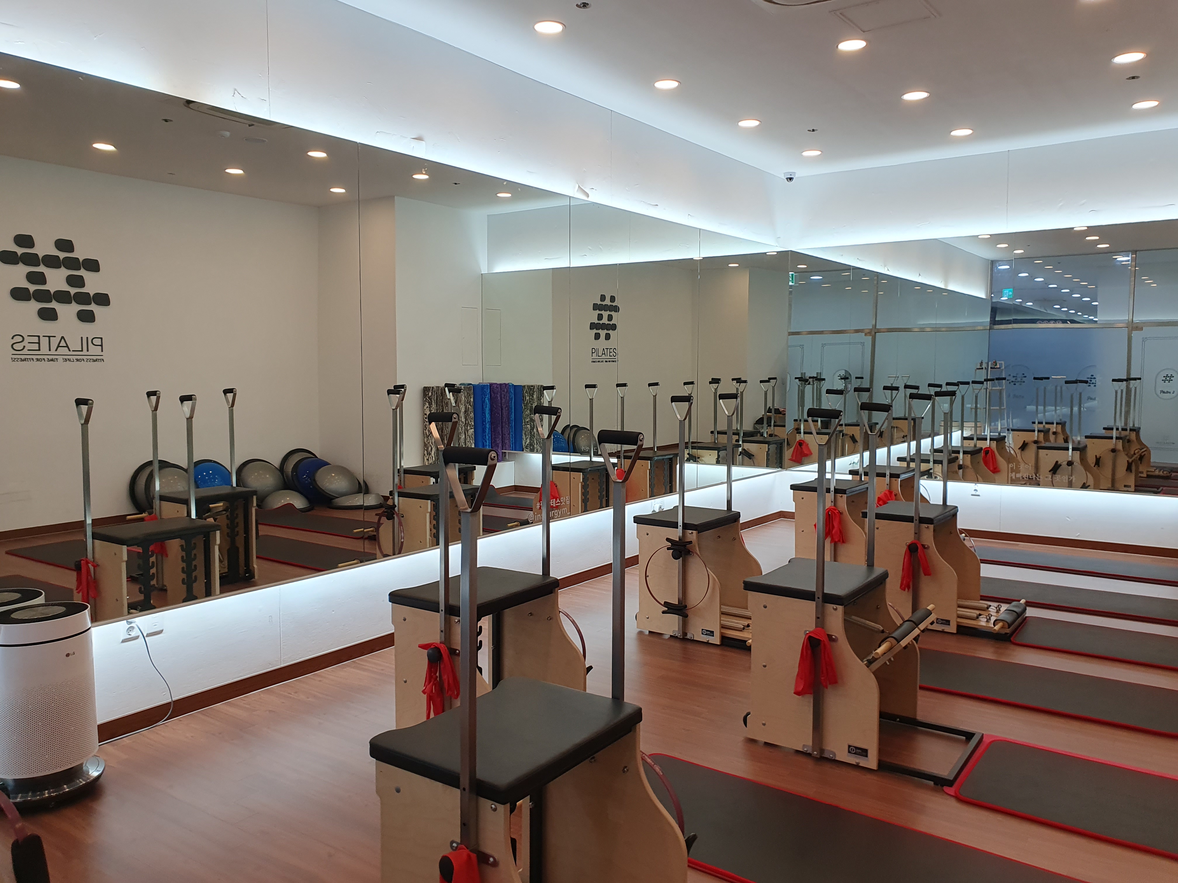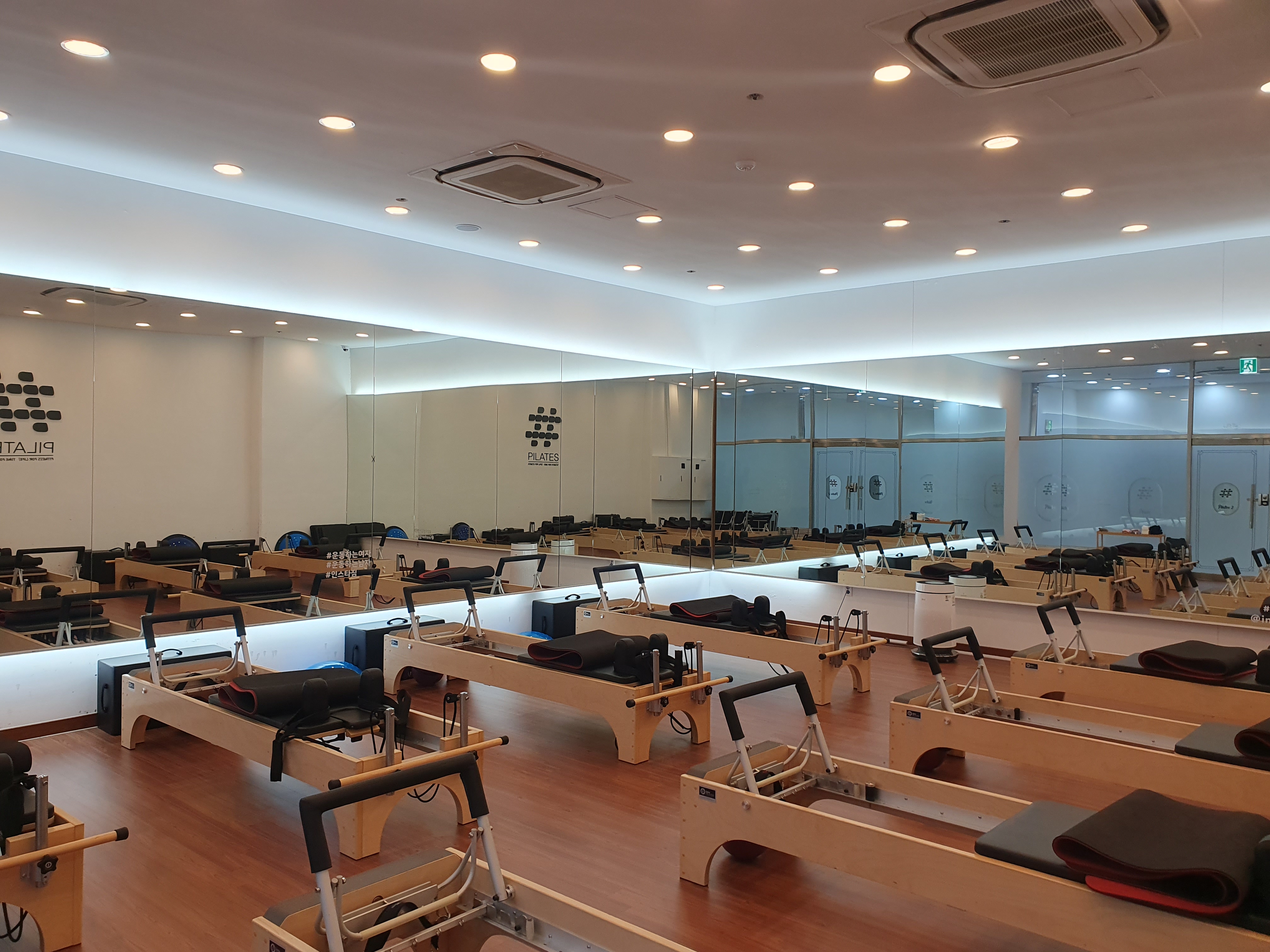 헬스장쪽의 탈의실에서 옷을 갈아입고, 외부로 나와 바로 앞에 있는 필라테스 공간으로 이동하면됩니다.