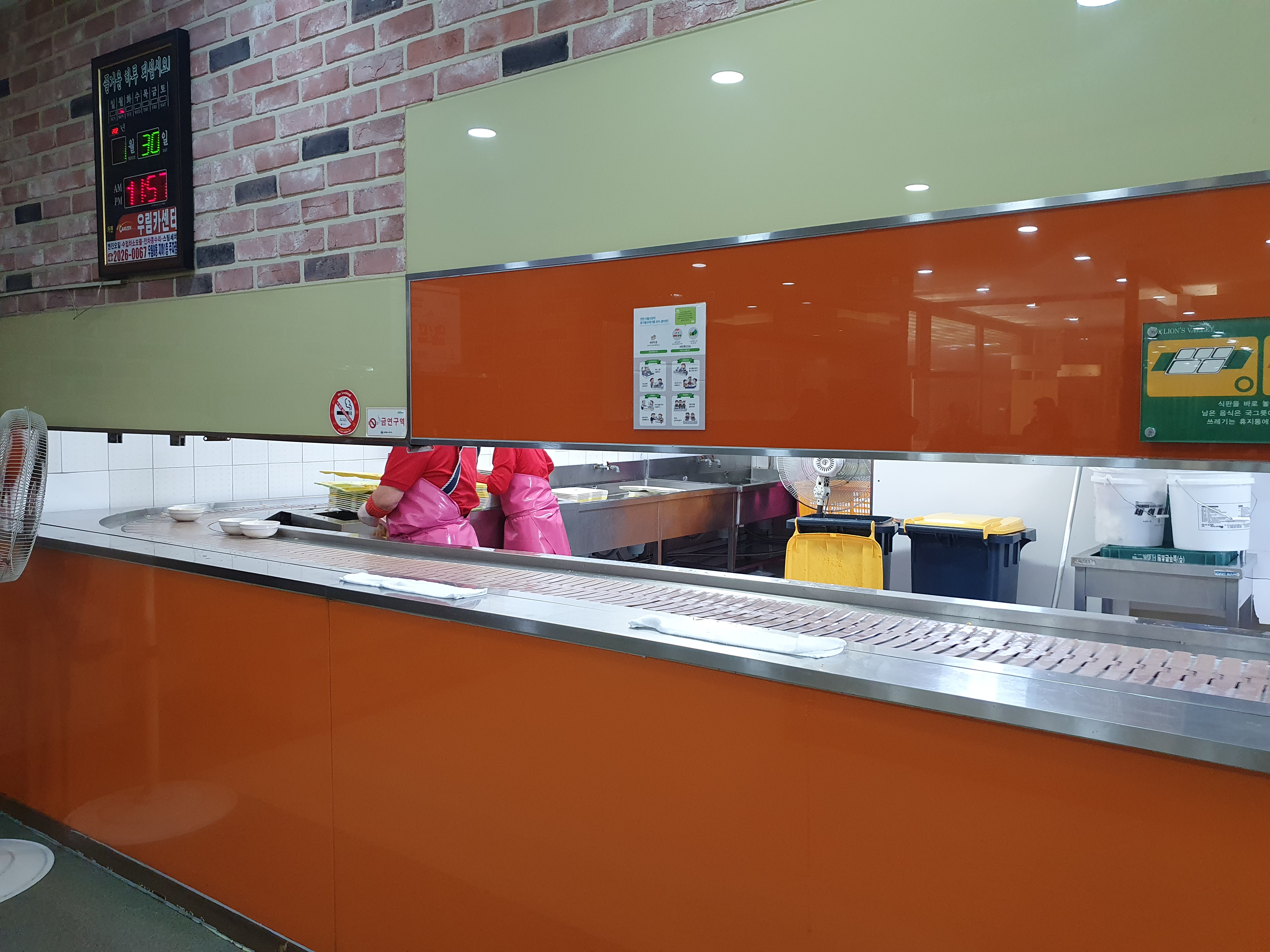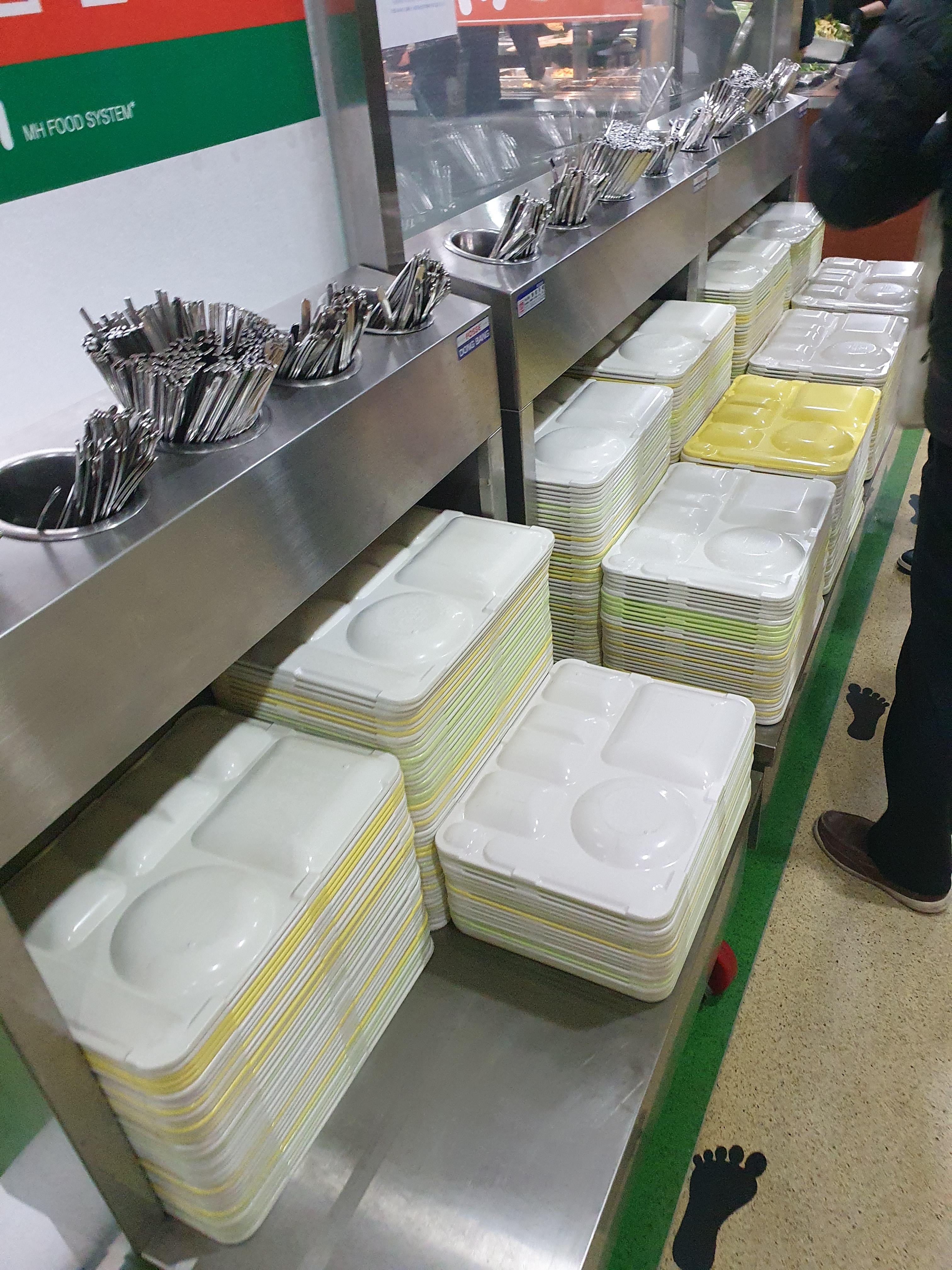 또한 배식하는 줄은 사진에서처럼 2줄로 설수 있는곳이 3곳이나 있습니다.