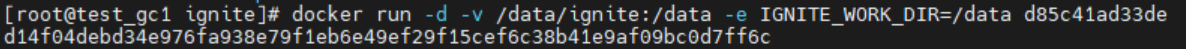 -e 명령어를 통해 IGNITE_WORK_DIR 옵션을 실행하여 Ignite 의 작업 디렉토리를 /data로 바꿔주며, 이 과정에서 디렉토리가 없으면 자동으로 생성된다.