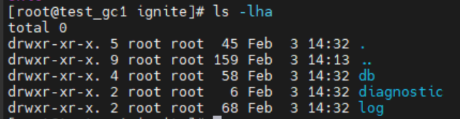 Localhost의 /data/ignite 디렉토리에 각각 데이터 디렉토리가 생성 된 것을 확인 할 수 있다.