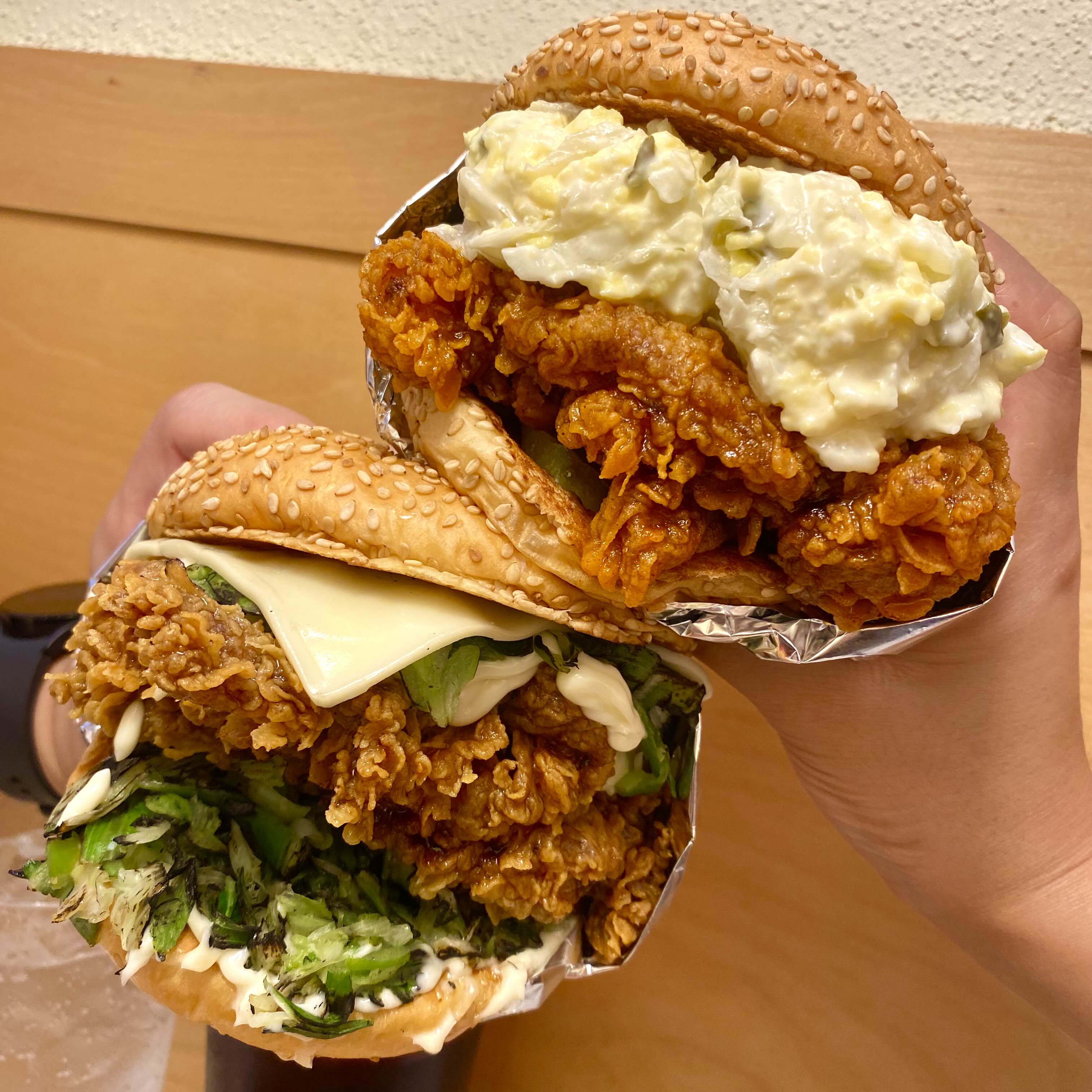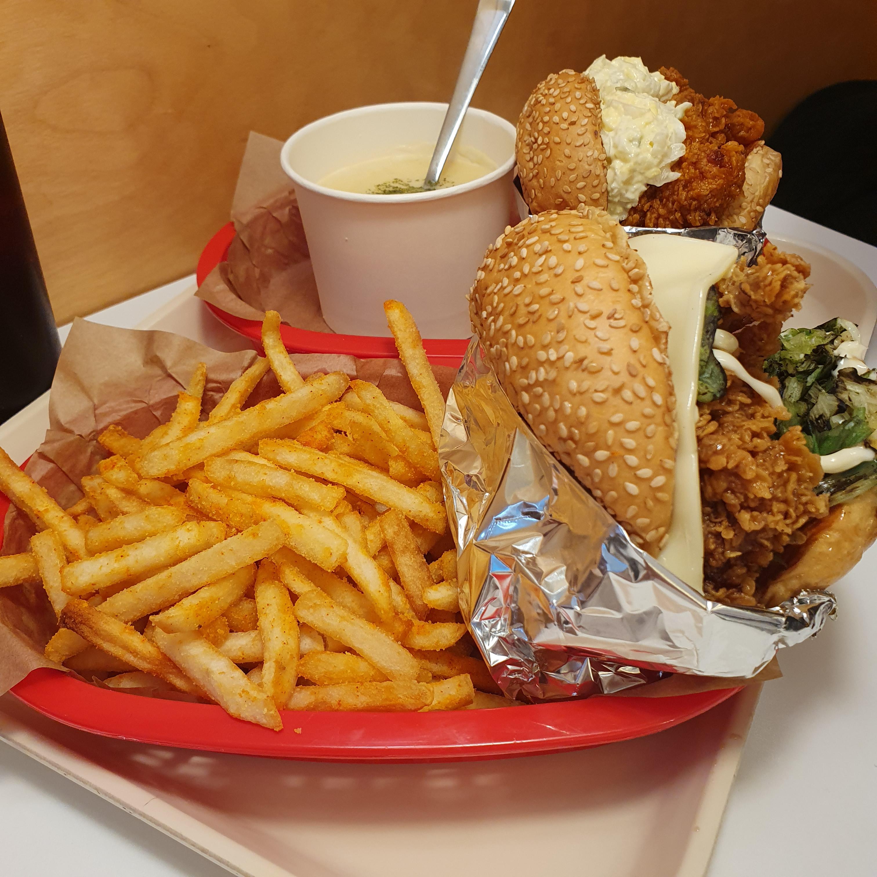 엄청 두툼한 치킨패티에 각종 재료들과 조화롭게 놓여있는 모습이 글을 쓰는 이순간에도 생각나서 또 먹고싶네요.
