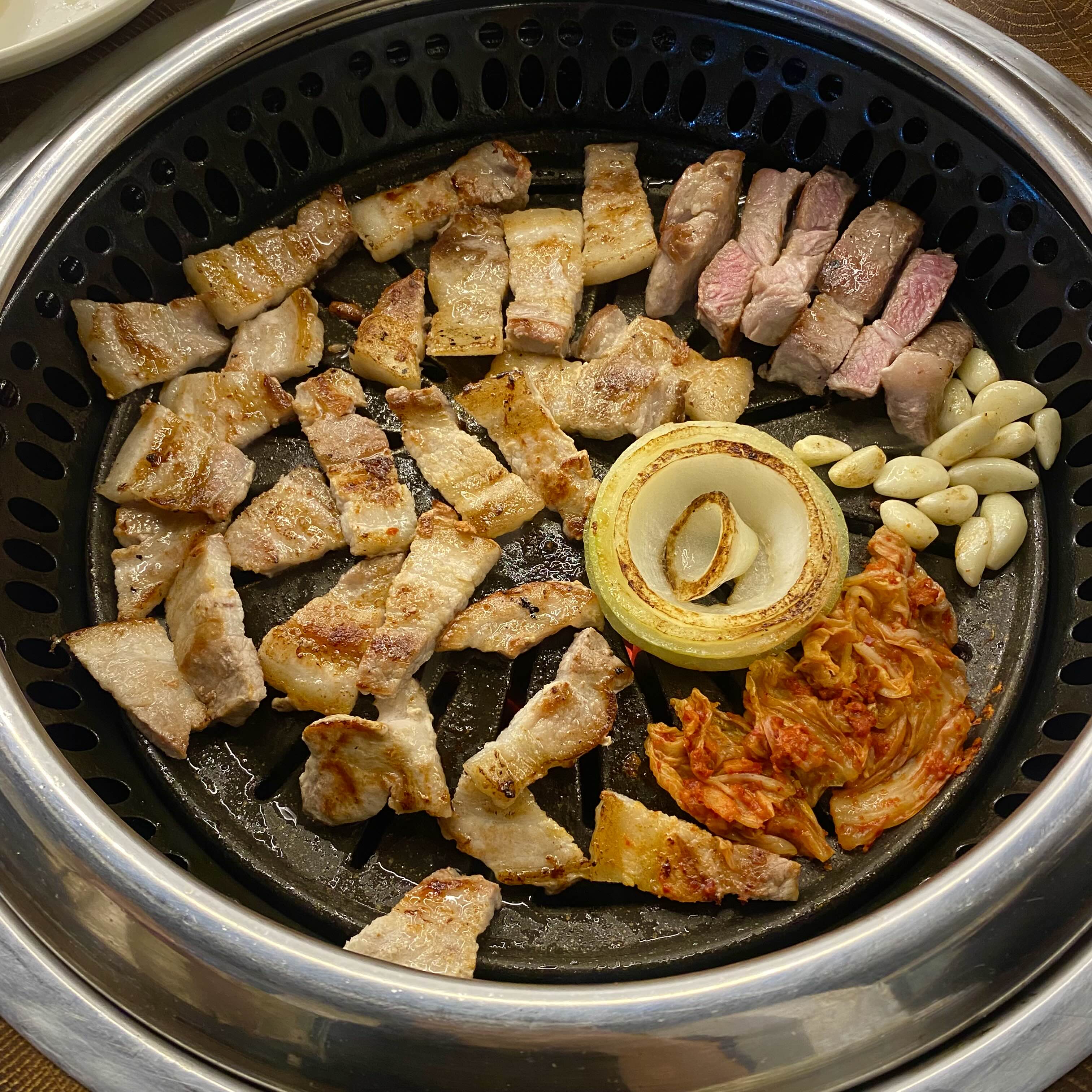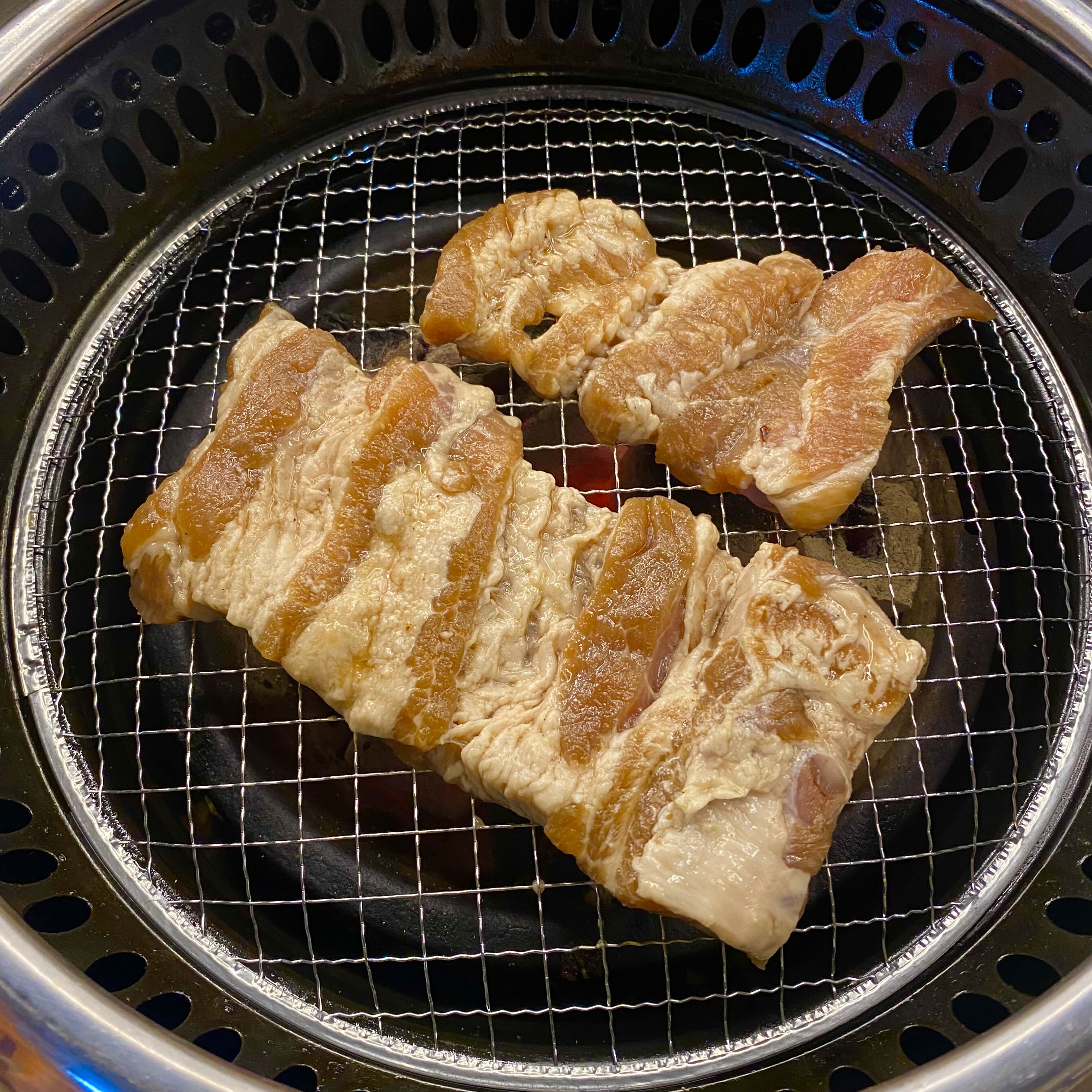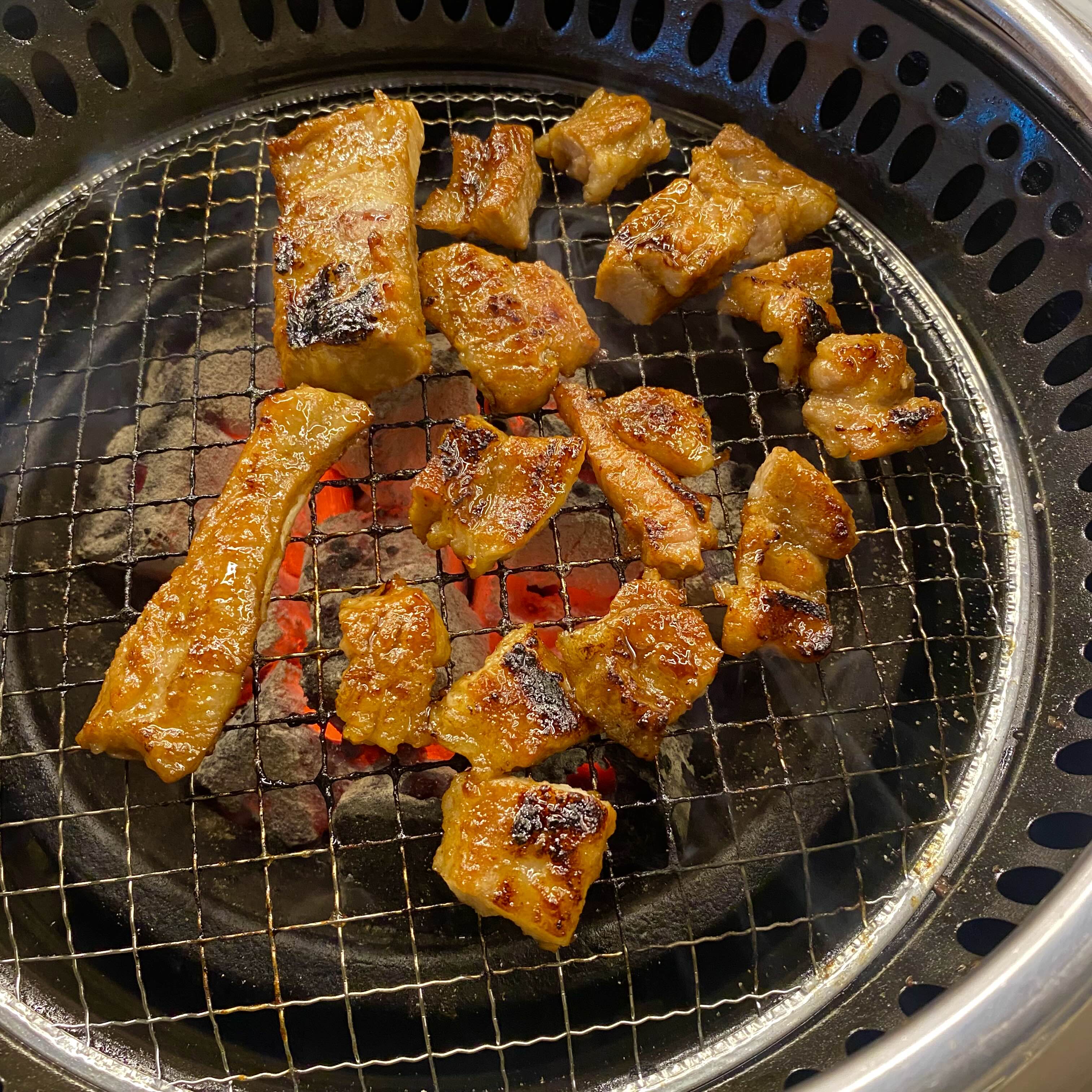 먼저 불판에 생고기를 먼저 구웠는데요.