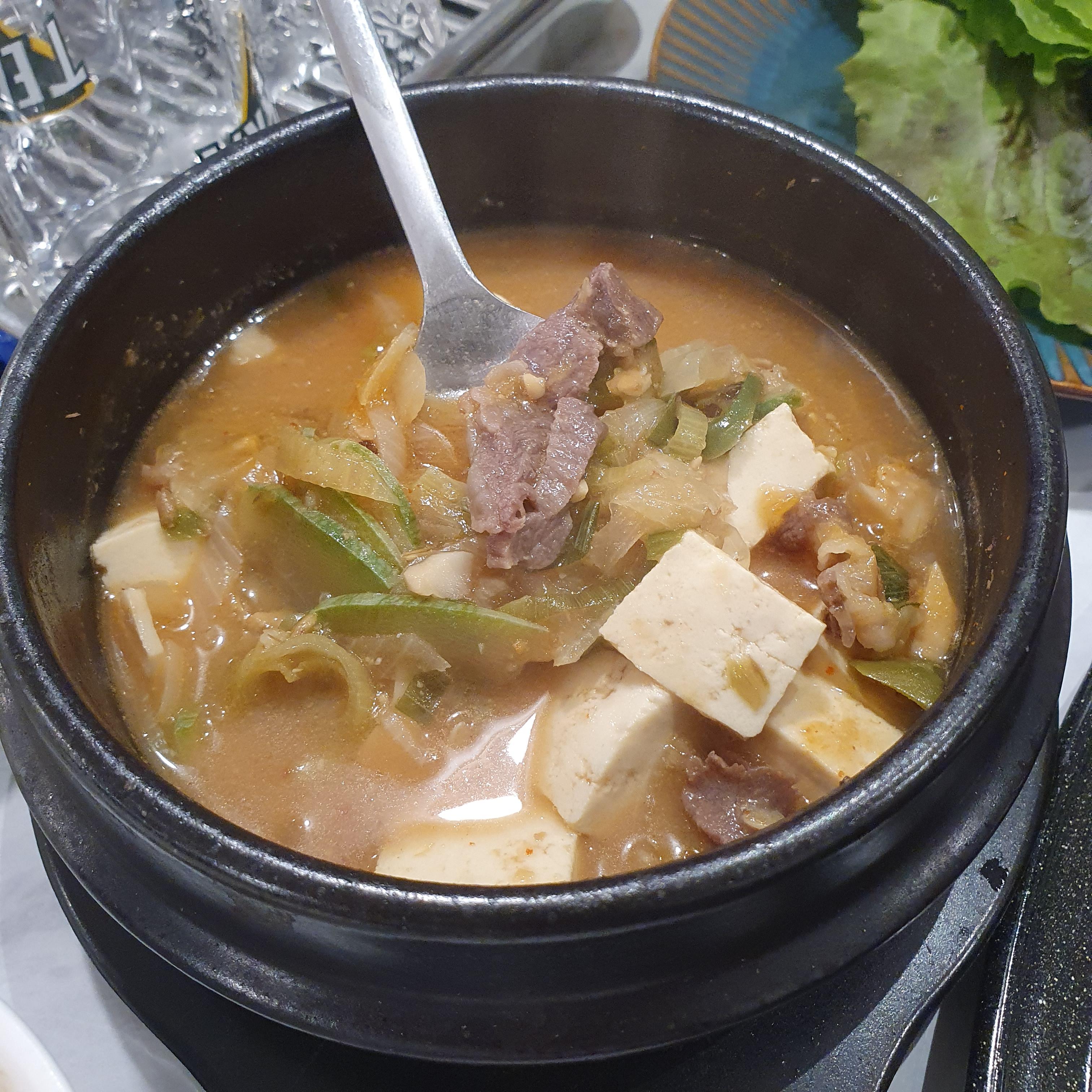 공기밥 짝꿍 된장찌개는 일반 된장찌개가 아닌 한우 된장찌개인데요. 안에 고기도 많이 들어가있고 구수한 맛이 아주 일품이였습니다. 역시 고기엔 된장찌개죠