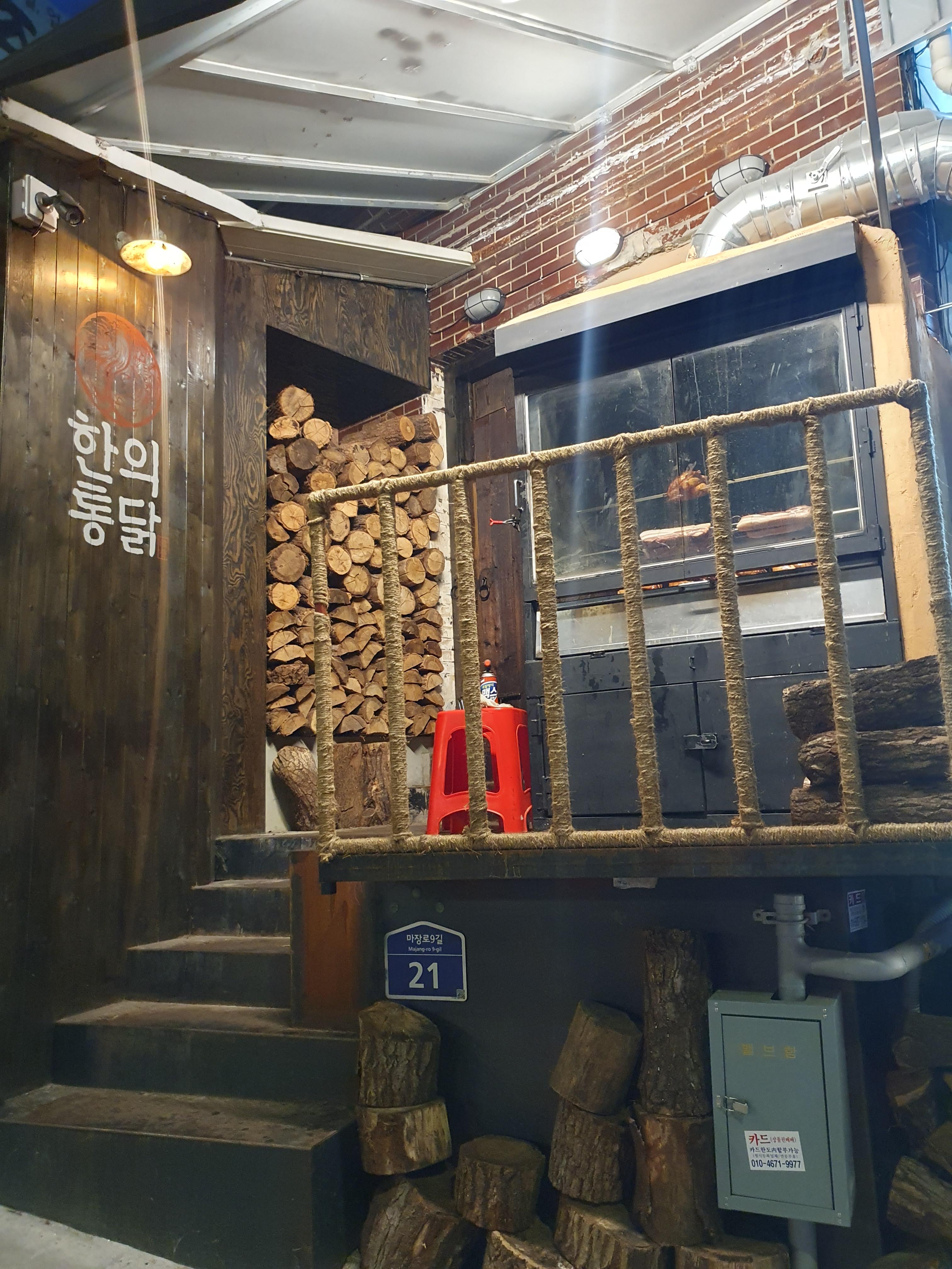 매장앞에 나무 장작과 안에서 통닭구이, 통삼겹 구이가 되고있는 모습을 볼 수 있습니다.